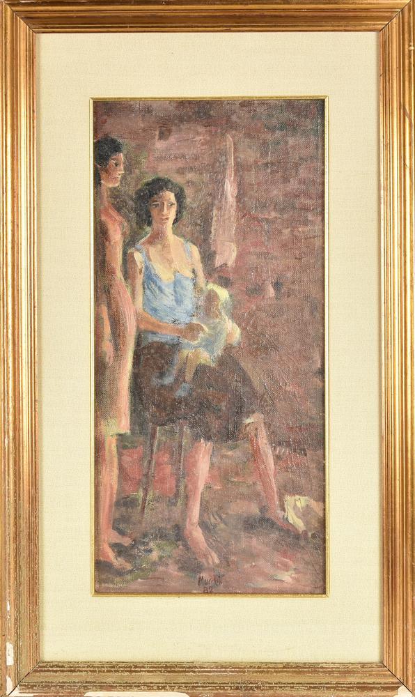 Gabriele Mucchi, (1899 - 2002) MATERNITA' olio su tela, cm 50,5x24,5 firma e...