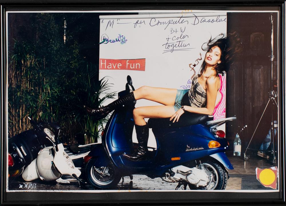 L'opera e' stata realizzata dall'artista durante la campagna fotografica per la realizzazione del calendario Vespa Piaggio del 2002 a lui commissionata.