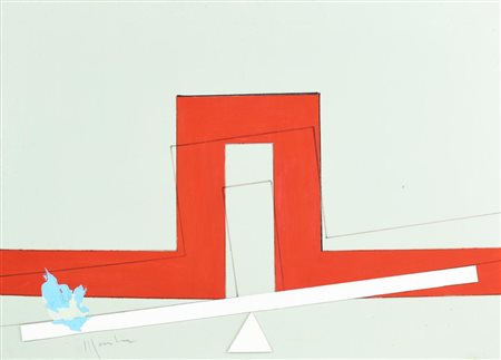 Aldo Mondino, (1938 - 2005) GRECA SU BILANCIA acrilico su tela, cm 50x70...