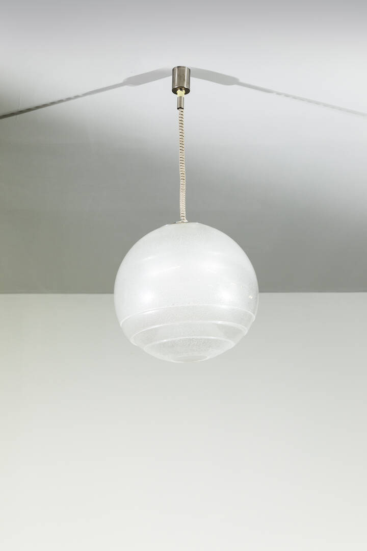 Lampada a sospensione costituita da elementi in vetro pulegoso.
