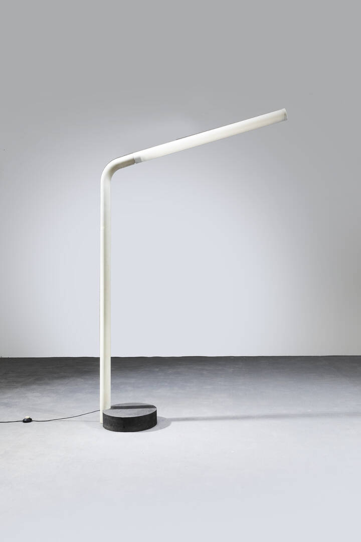 Lampada da terra in metallo verniciato, diffusore in plexiglass.
