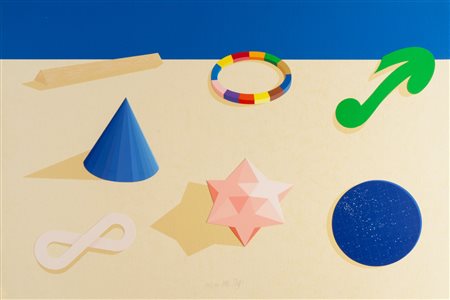 Lucio Del Pezzo (Napoli 1933 - Milano 2020), “Senza titolo”.Litografia e collage su cartoncino, presenta in basso al centro firma e numero di tiratura 86/100, reca timbro a secco Intergrafica - Roma, H cm 70x100