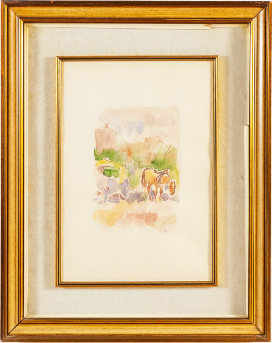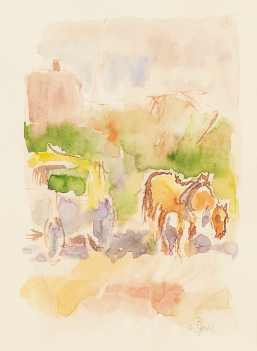 Umberto Sgarzi (Bologna 1921 - 2017), “La carrozza”.Acquerello su carta, firmato in basso a destra, H cm 50x35 - con cornice 75x60