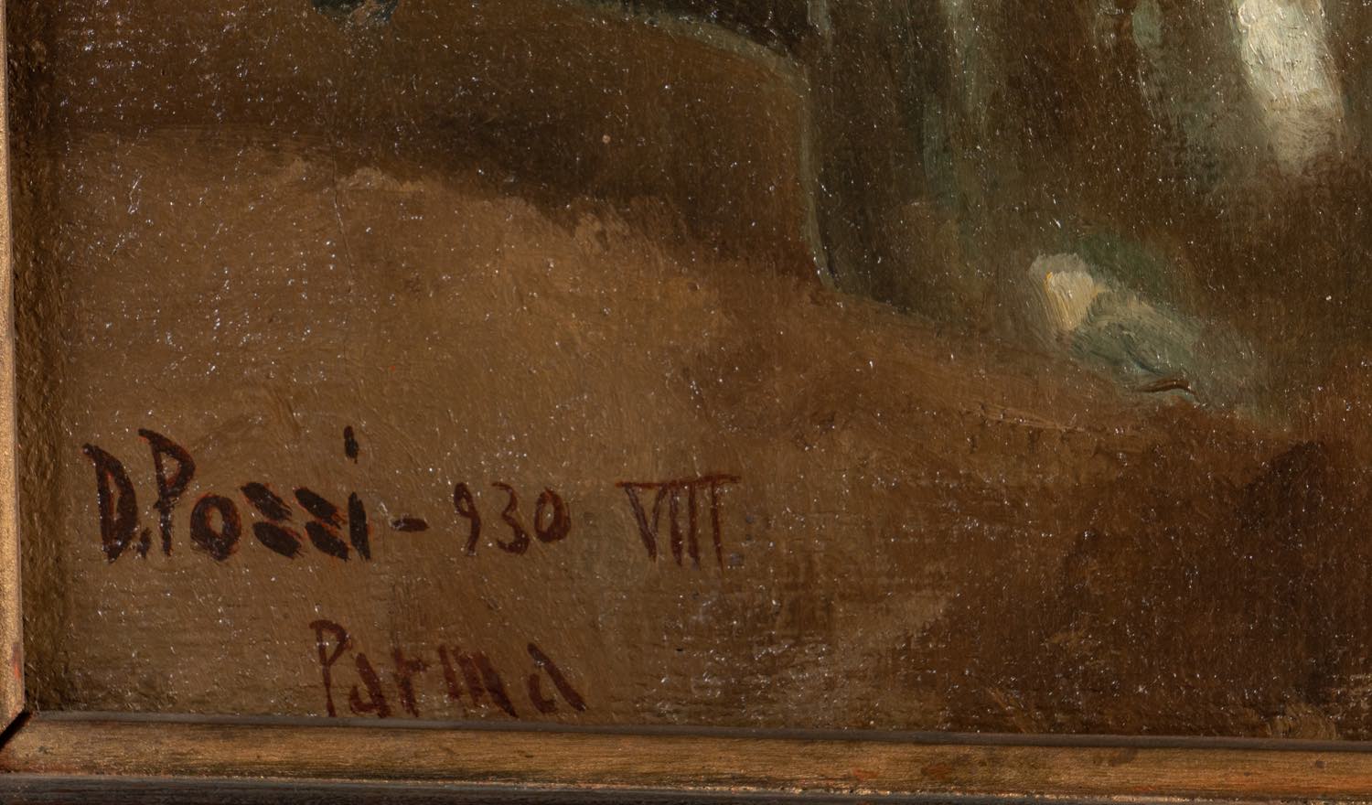 Donnino Pozzi (Fontanellato 1894 - Parma 1946), “Il pane”, 1930.Olio su tela, presenta in basso a destra firma, data, cifre e luogo “D. Pozzi - 930 VIII/Parma”, reca al retro sulla tela iscrizione con firma, titolo e indirizzo, sul telaio e sulla cornice presenta etichette della XVII Esposizione Internazionale d’Arte - Venezia 1930, H cm 60x90