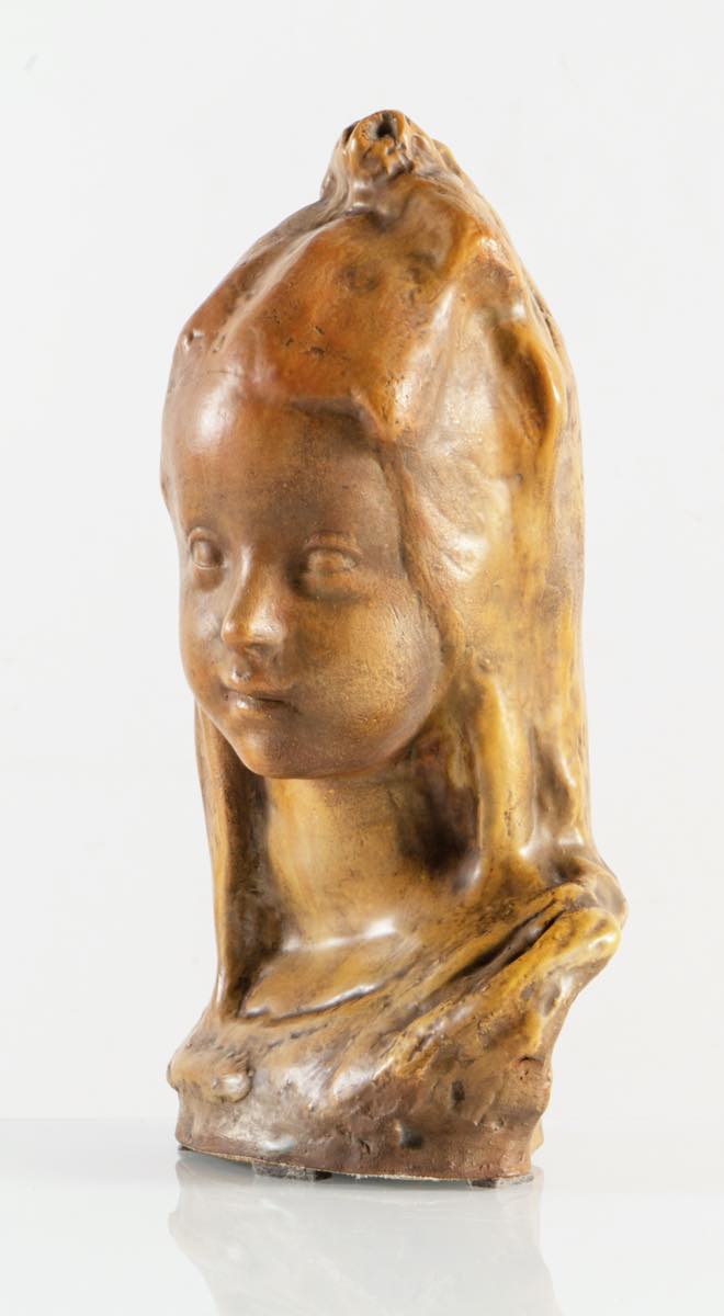 Pietro Melandri (Faenza 1885 - 1976), “Testina di fanciulla”.Scultura in maiolica, reca al retro firma Melandri, H cm 30x17x14