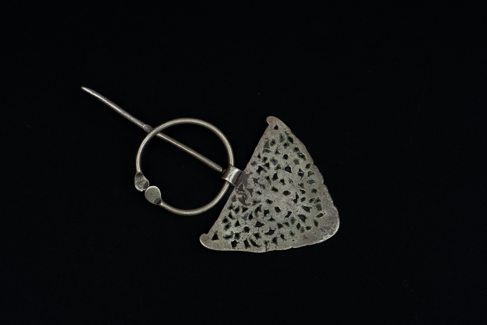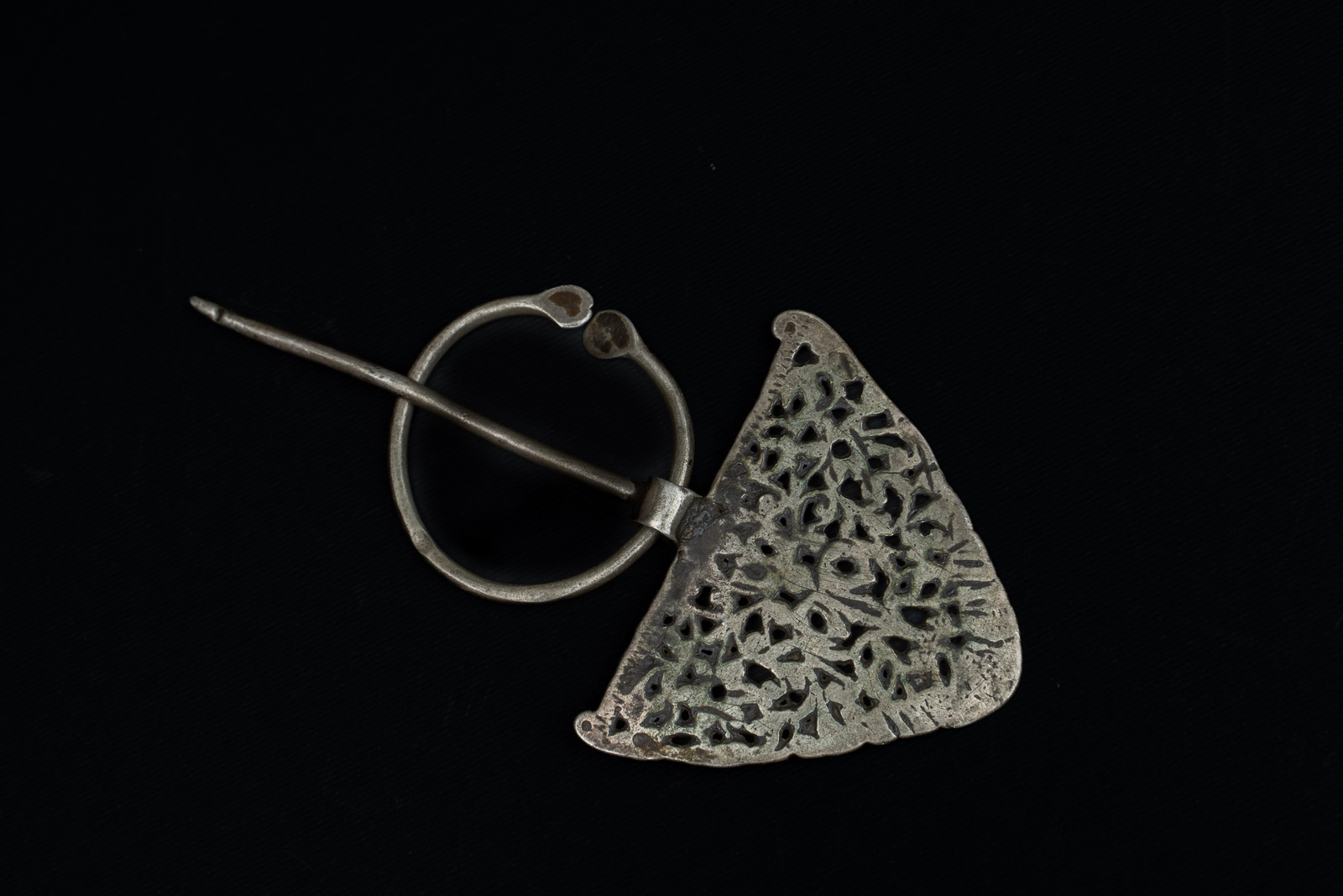 Argento. . Cm 7,30 x 14,50 x 0,50. Bella ed antica fibula nord africana sapientemente traforata.