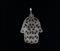 Argento. . . Cm 2,20 x 4,00. Piccola mano di Fatima in argento traforato, ma secondo la tradizione araba, grande talismano contro il malocchio.