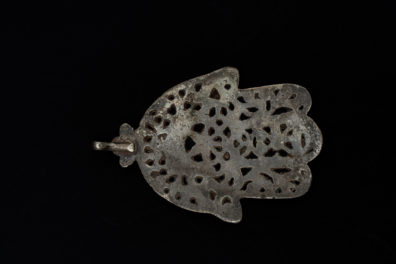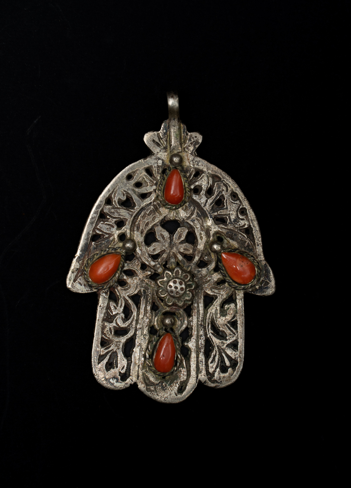 Arte africana - Nord Africa. Pendente mano di Fatima Hamsa o Khamsa. Argento e corallo. .