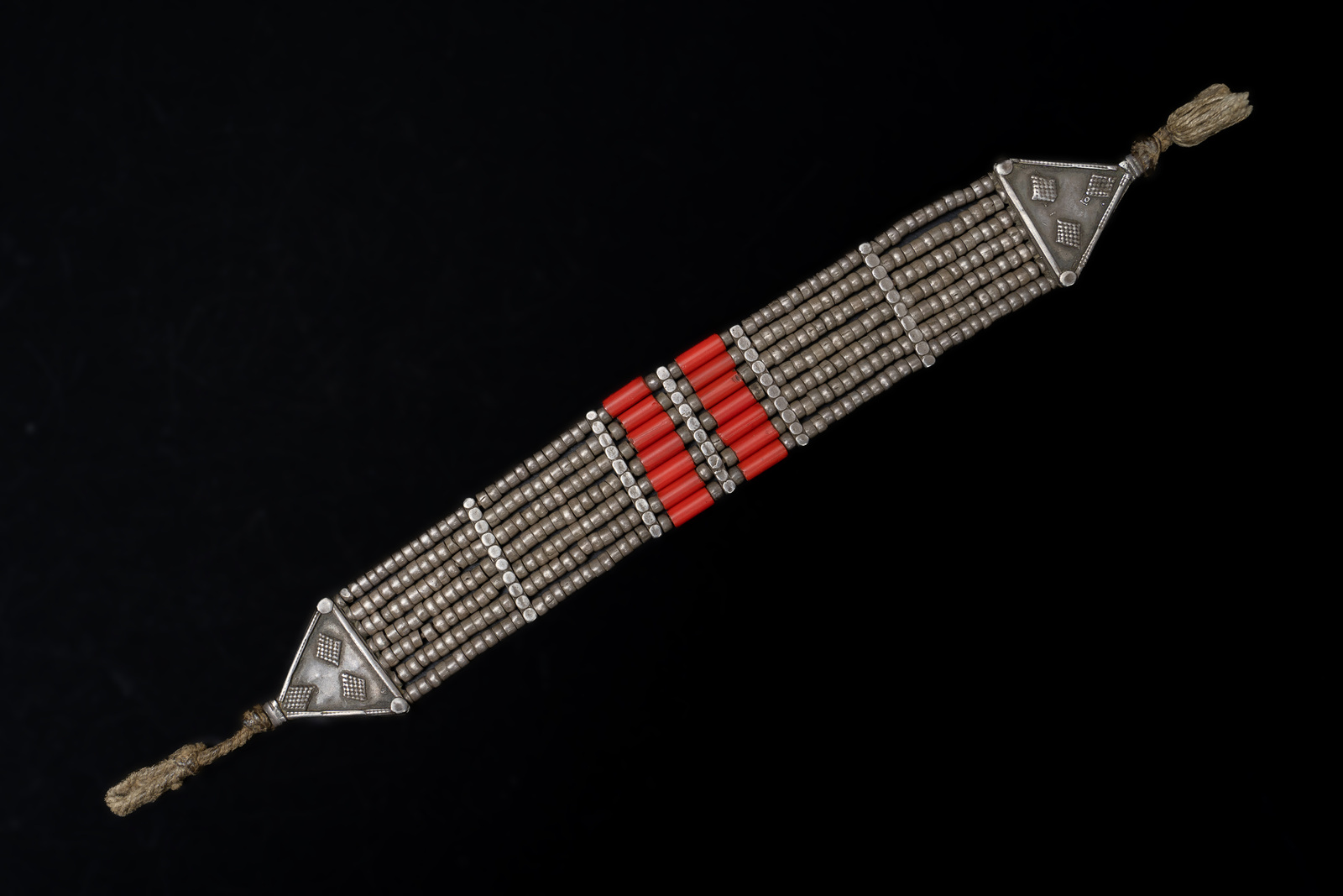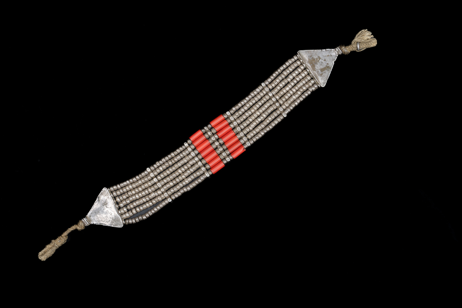 Arte Islamica - Yemen Ta'izz. Girocollo. Argento, pasta vitrea e cotone. .