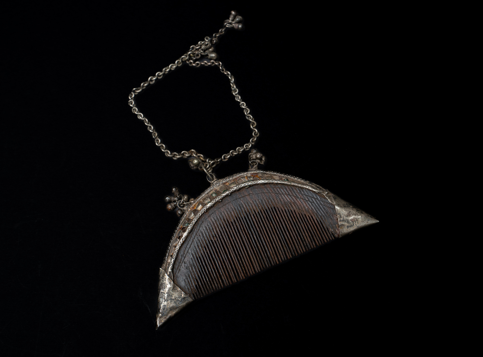 Arte Indiana - India Rajastan. Pettine. Argento e legno duro.