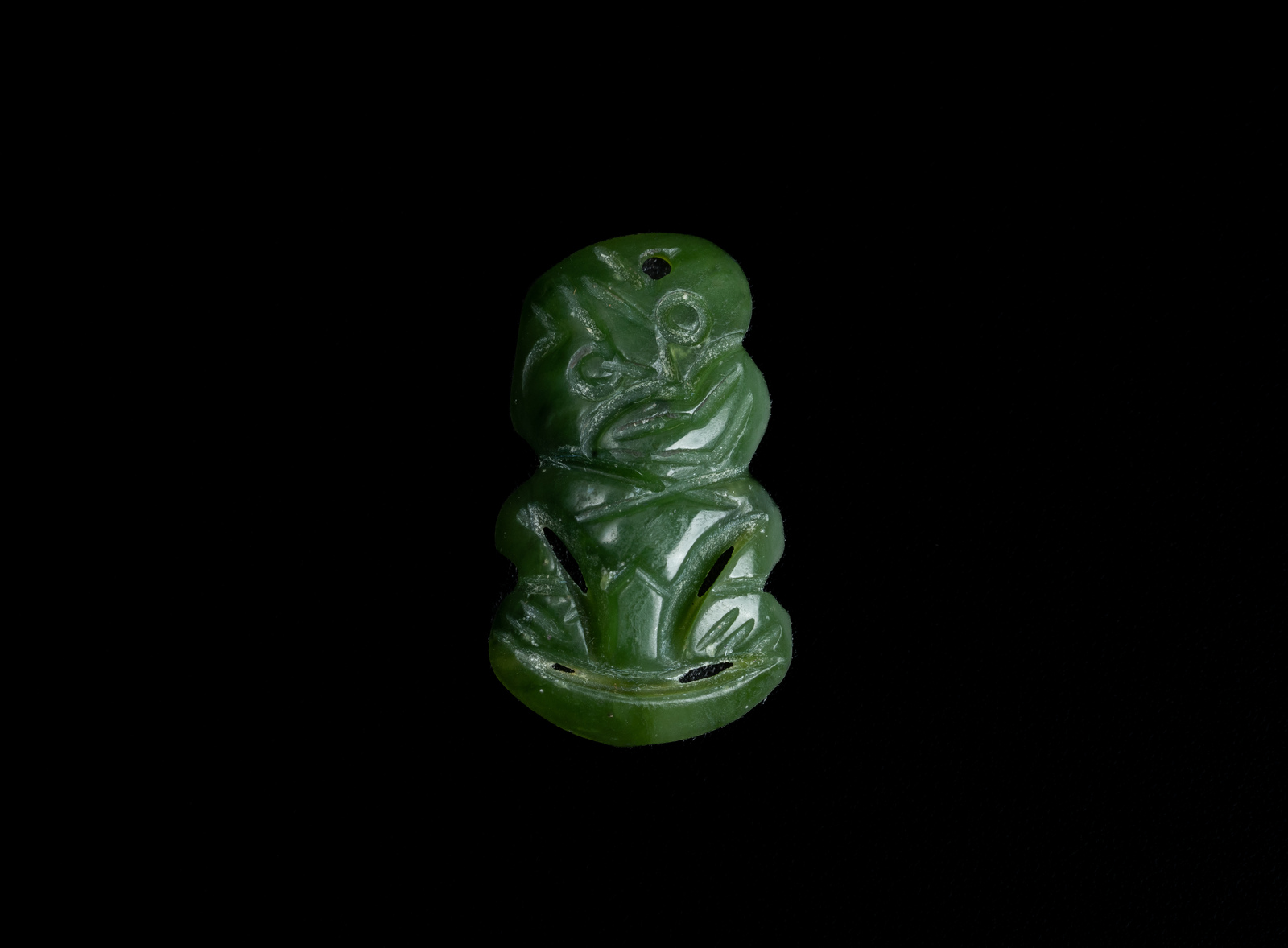 Arte oceanica - Nuova Zelanda, Maori. Pendente antropomorfo Hei Ttiki. Nefrite. .
