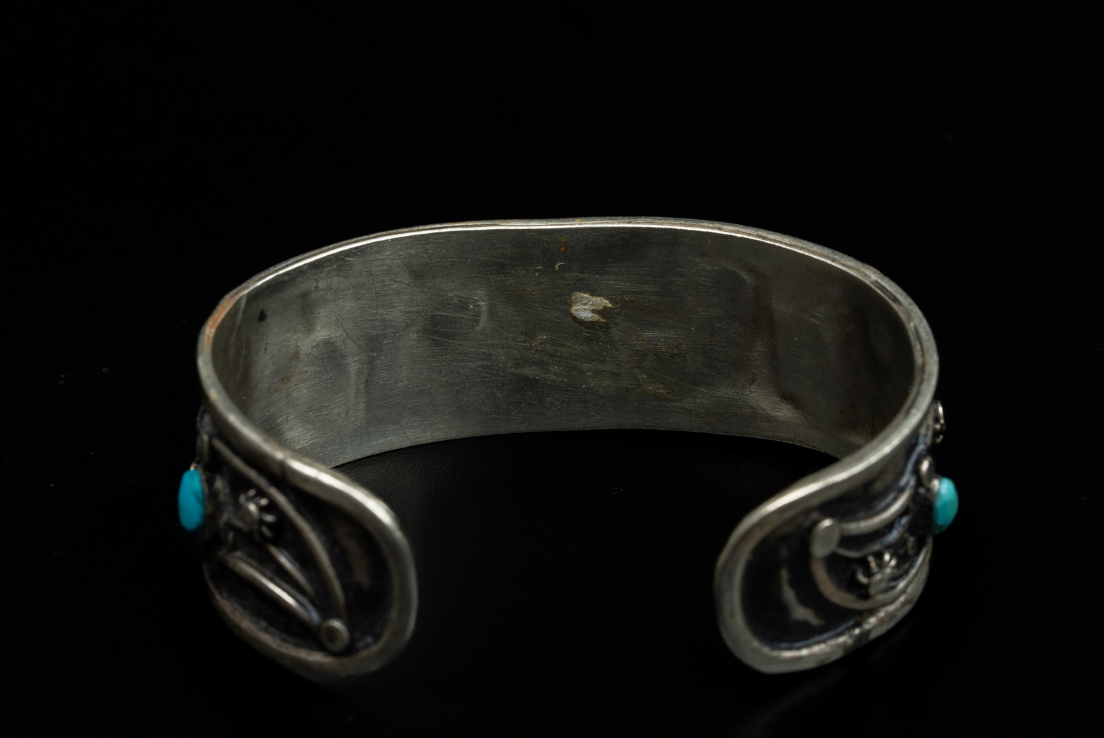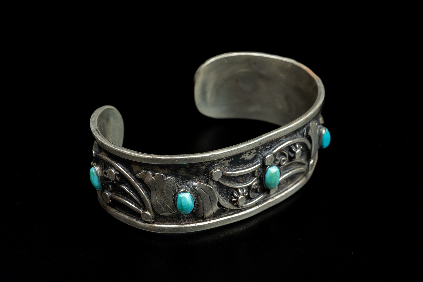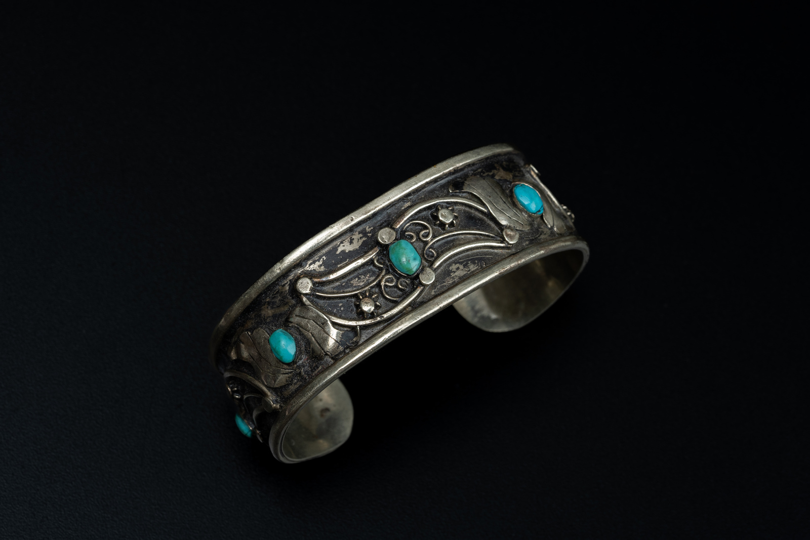Arte del Nord America - U.S.A. Navajo. Bracciale rigido. Argento e turchesi tagliati a mano. .