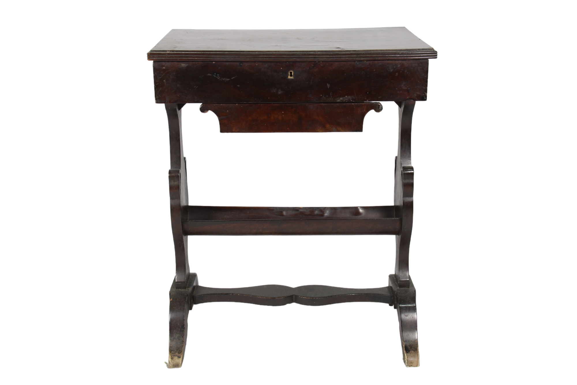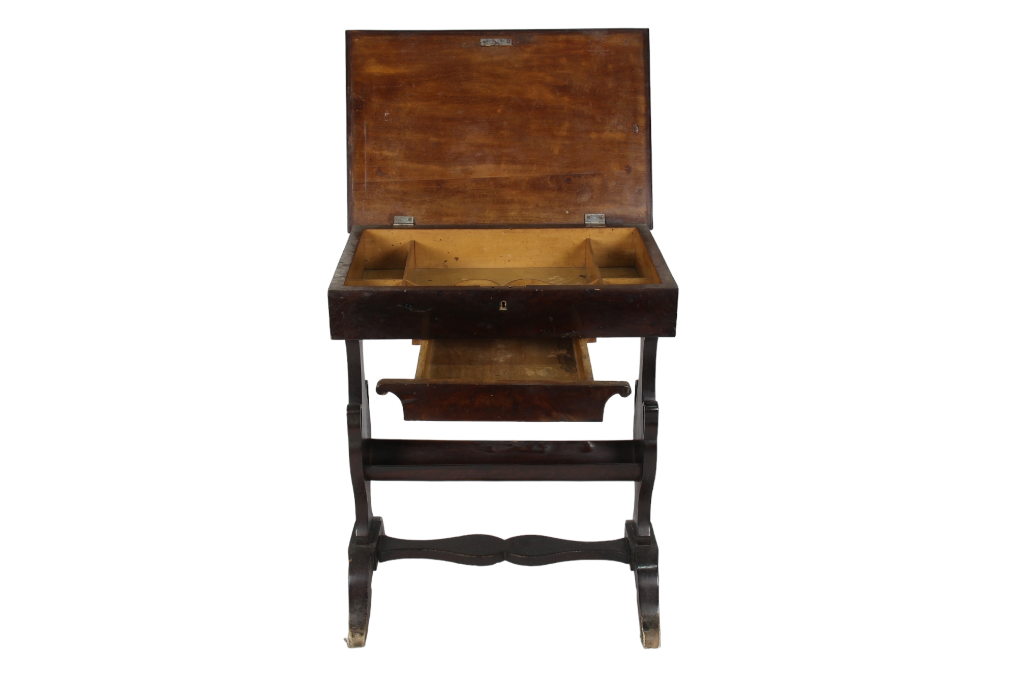 ELEGANTE TAVOLINO DA LAVORO in piuma di mogano.Sicilia 1830 circa.h cm 73 X 59 X 40