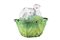 ZUPPIERA in ceramica policroma a forma di cavolo, coperchio sormontato da coppia di conigli manifattura veneta periodo Liberty. h cm 30 X 33,5
