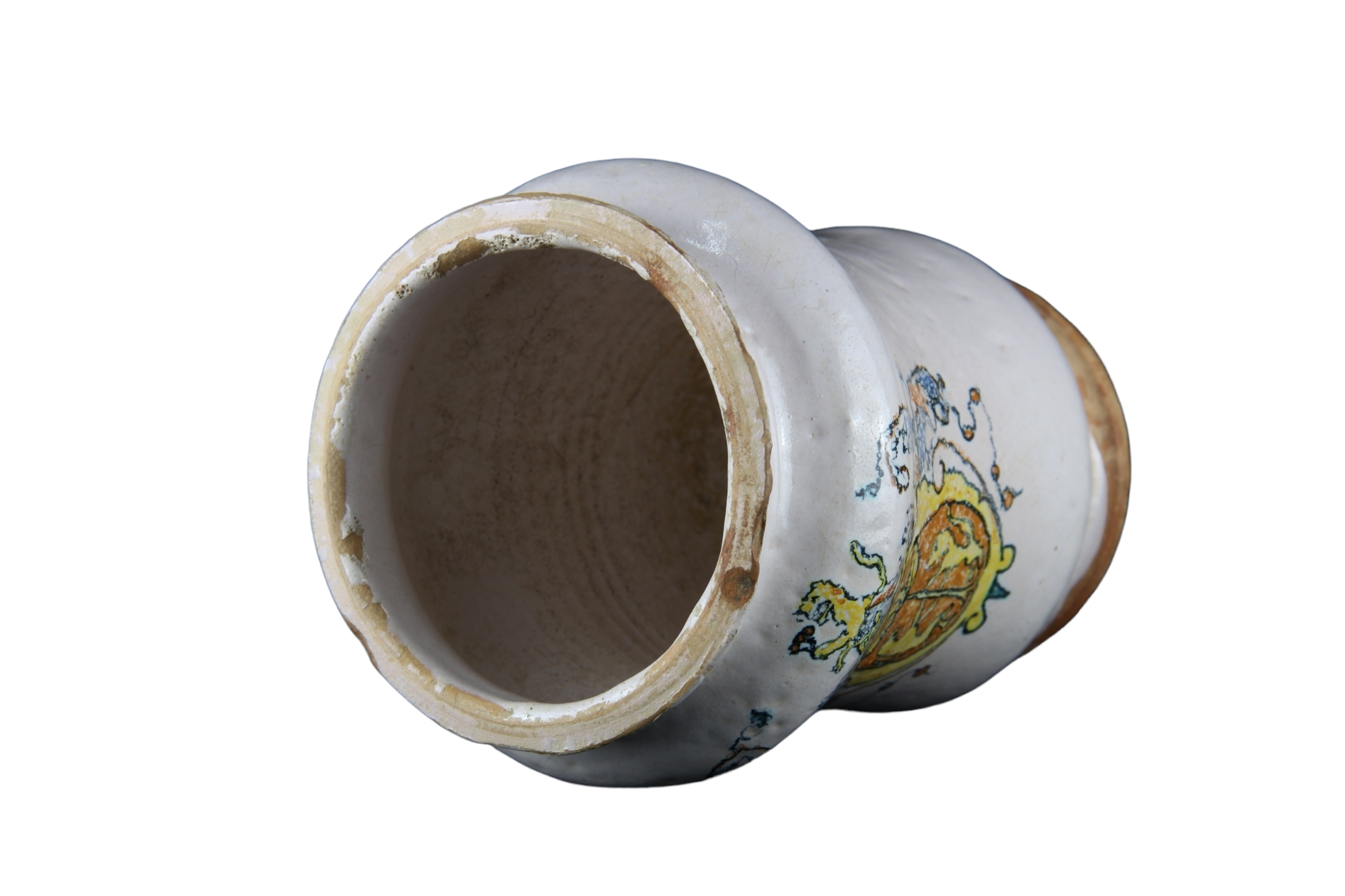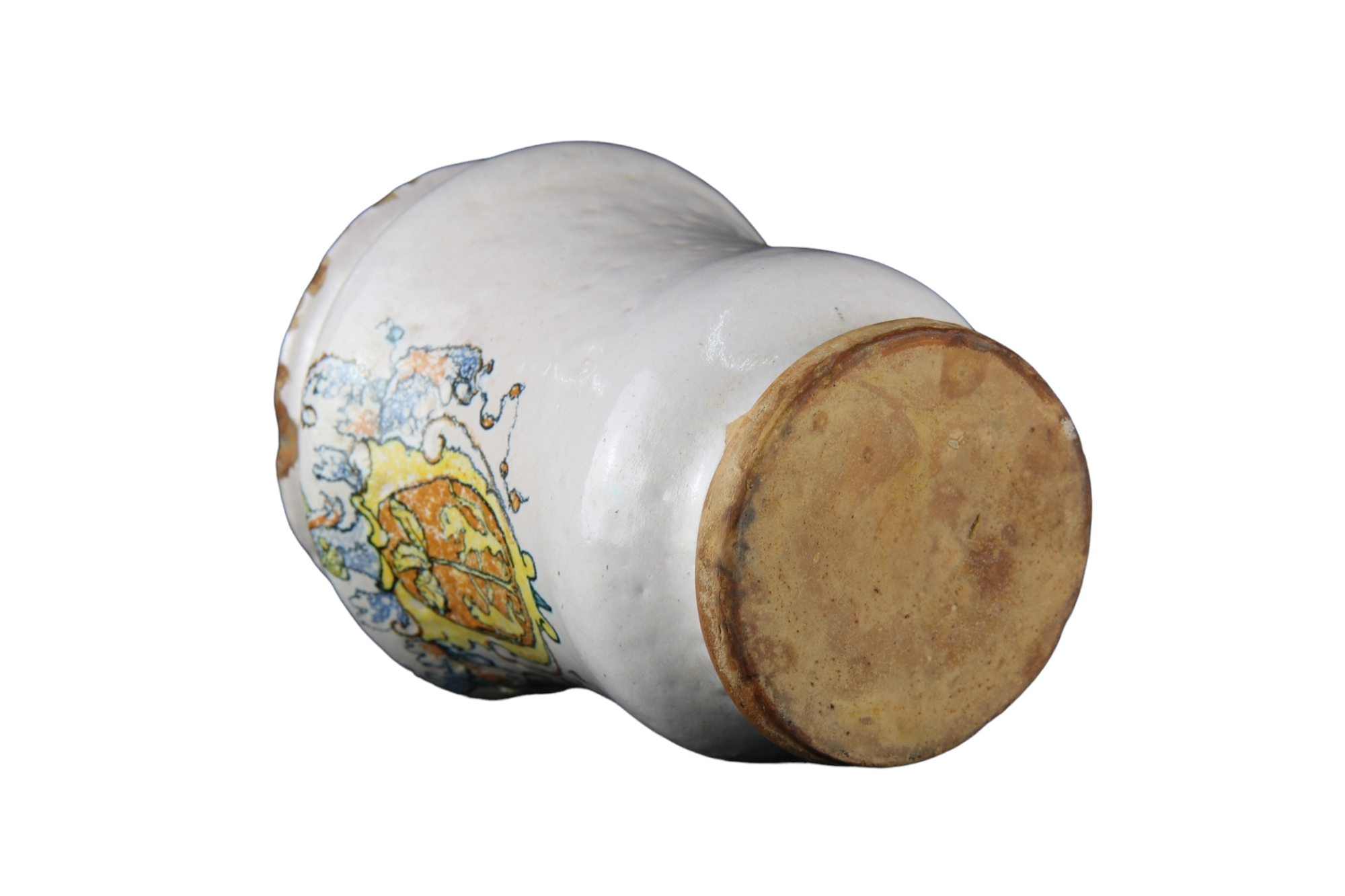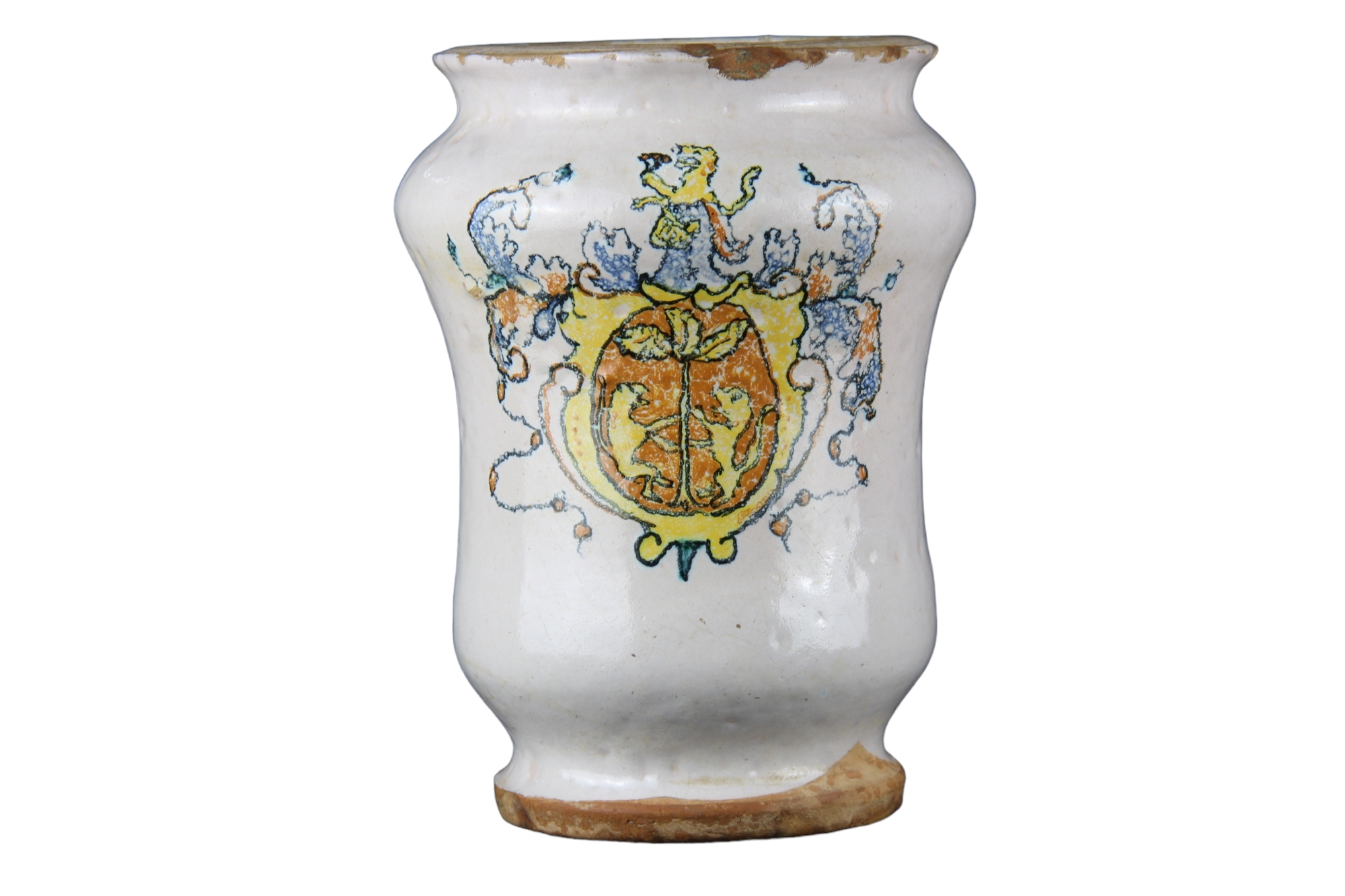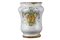PICCOLO ALBARELLO DA FARMACIA in maiolica con un blasone. manifattura Faentina fine XIX .h cm 14,5 X 11