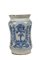 VASO DA FARMACIA in maiolica a fondo bianco e blu fronte presenta stemma nobiliare Manifattura La Terza, Puglia 1710 circa .h cm 25,5 x 16