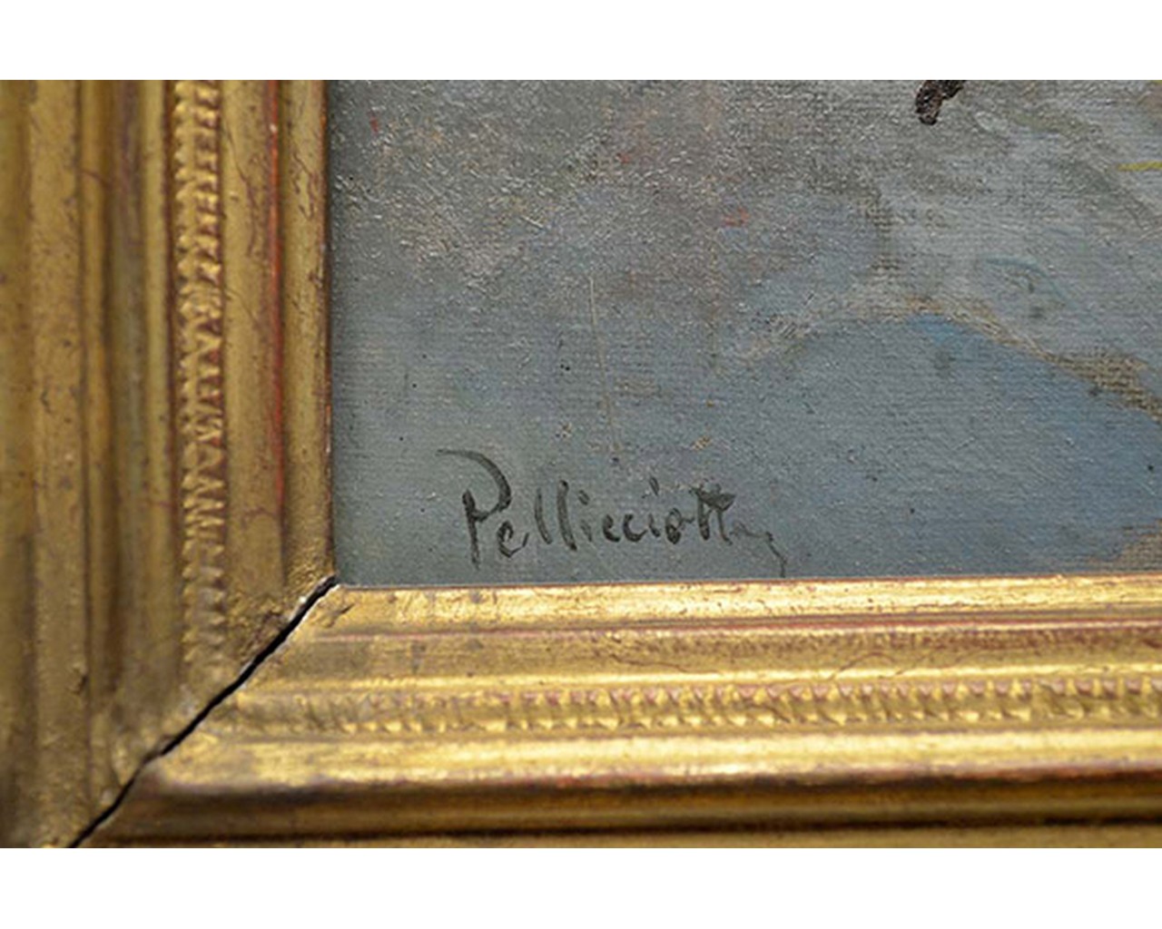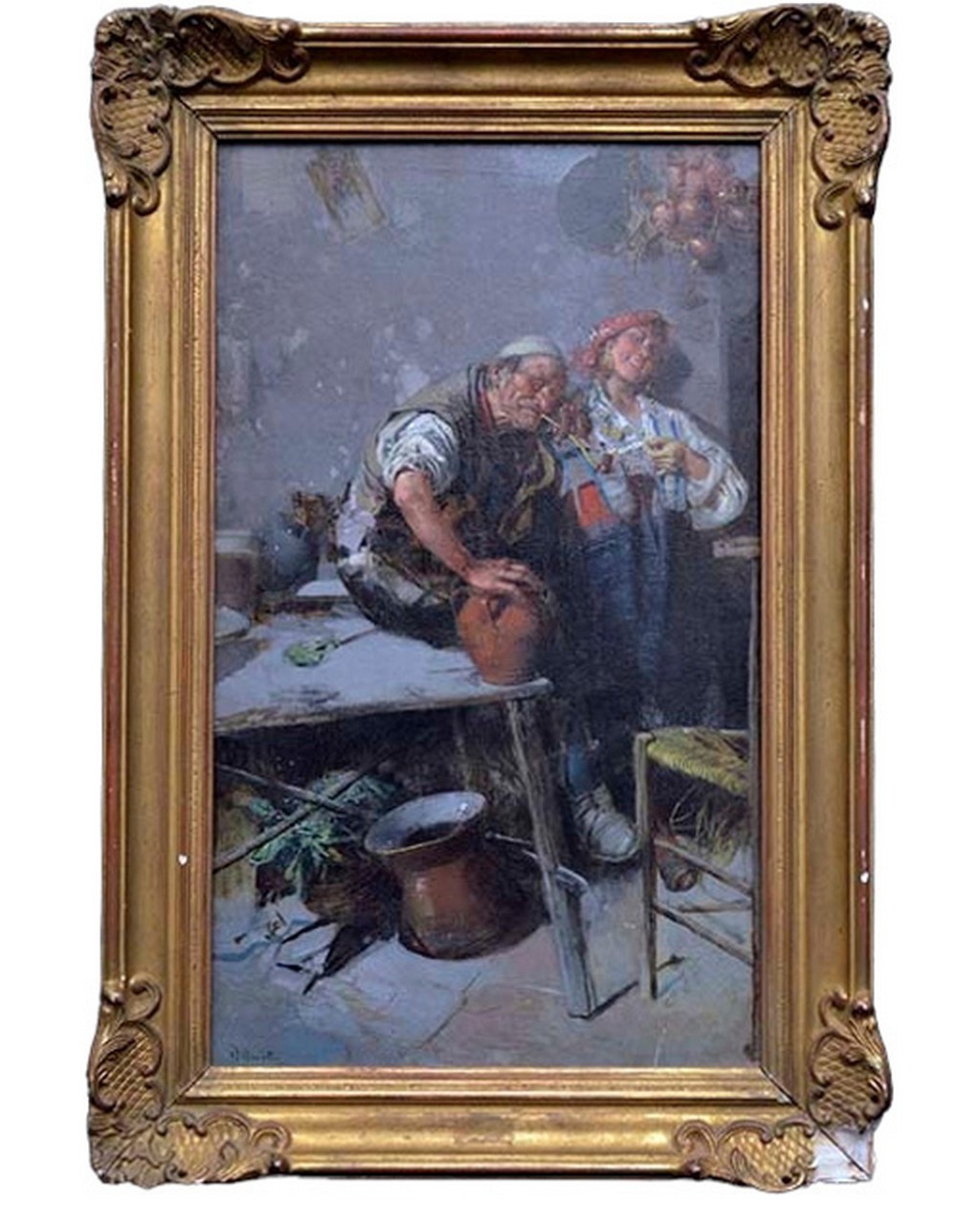 OLIO SU TELA Scena D'interno Con Personaggi, firmato TITO PELLICCIOTTI 1871-1950 Barisciano – L'Acquila. h. cm 30,5 X 52,5