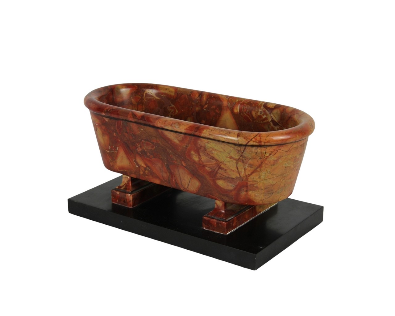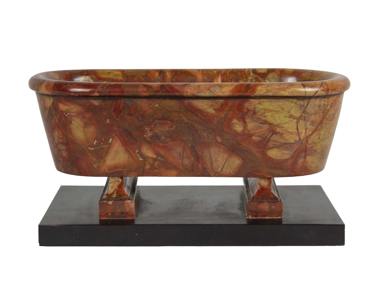 PICCOLA VASCA in marmo Diaspro francese e giallo antico. XIX secolo. h cm 14 x 25 x 15