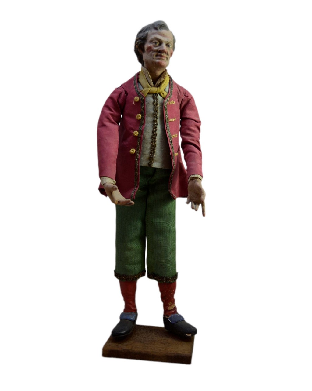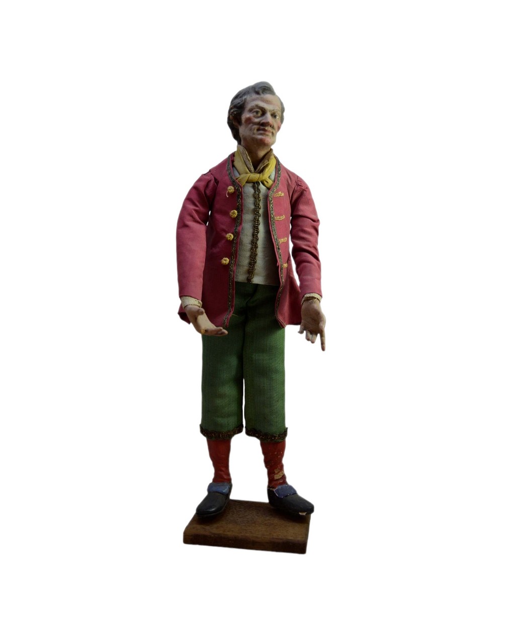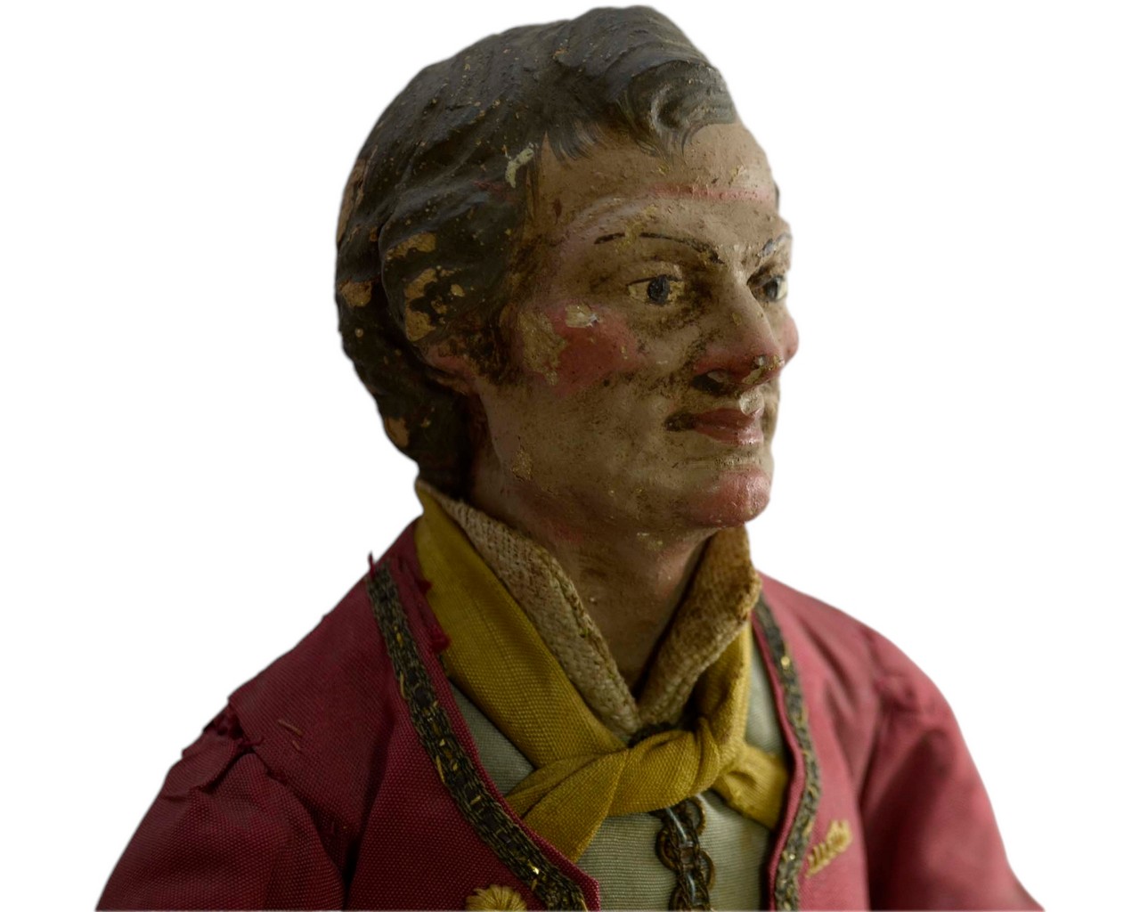 SCULTURA DA PRESEPE Raffigurante Viandante testa in terracotta ,occhi in vetro ed arti in legno. XIX secolo . h cm 20