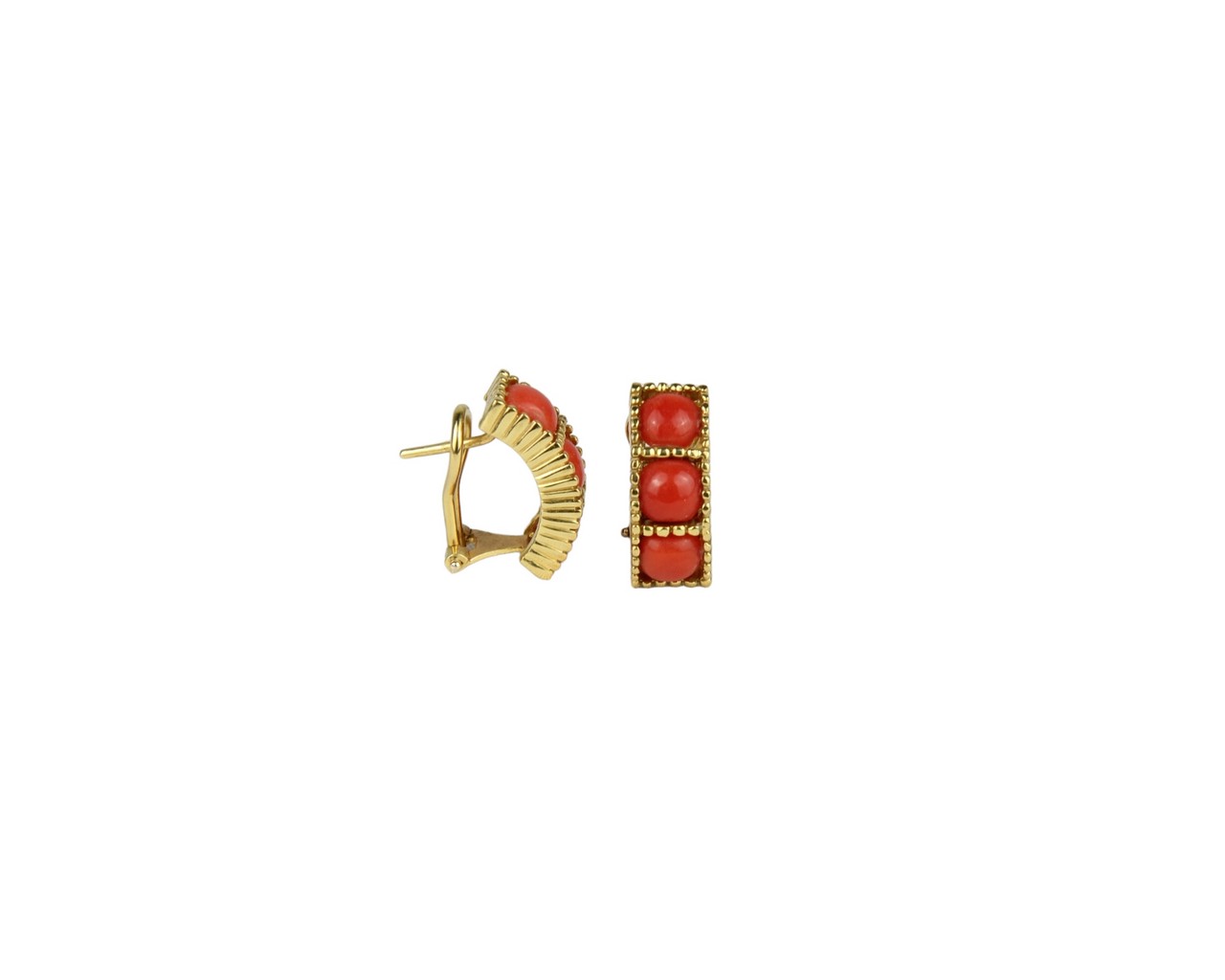 ORECCHINI oro e corallo . Gr 13, manifattura italiana XX secolo