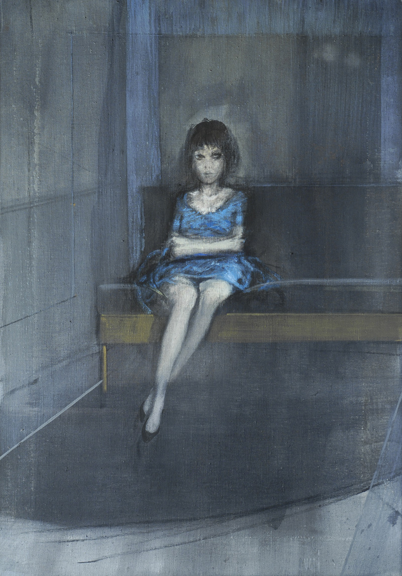 Alberto Sughi (Cesena, 1928) RAGAZZA IN ATTESA, 1962-1963 Olio su tela, cm. 100x70 Firma e titolo sul verso. Autentica dell’autore su foto.