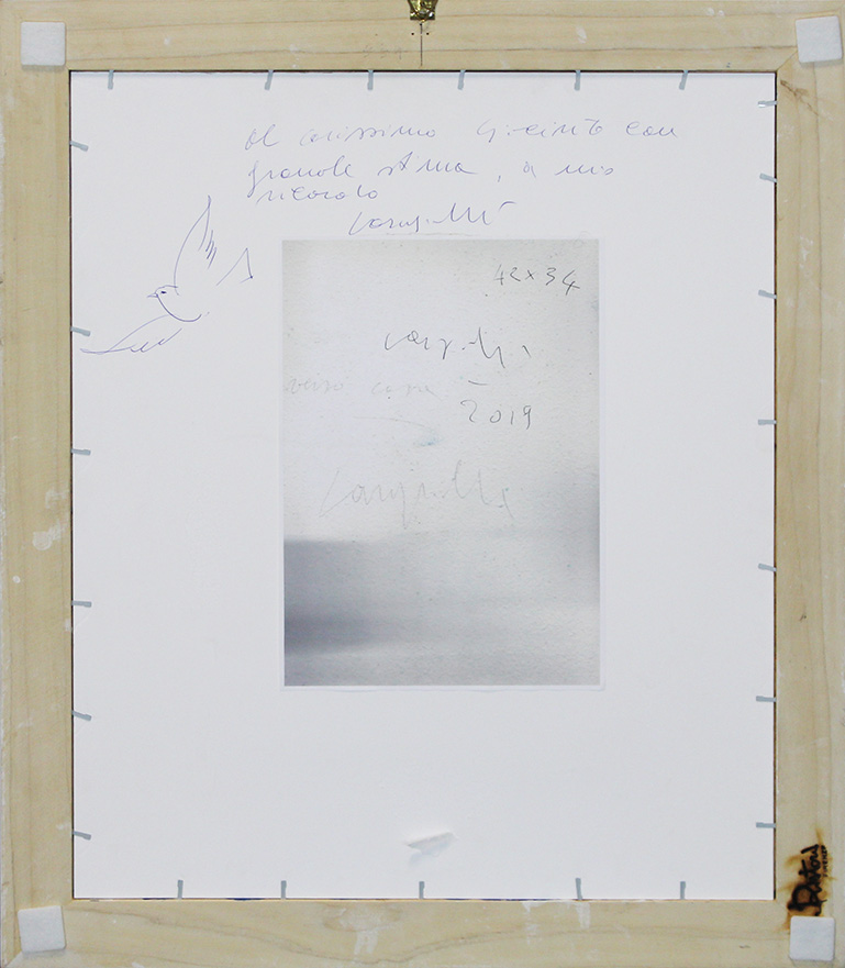 CLAUDIO CARGIOLLI, "Verso casa", 2019, Tecnica mista su cartoncino, Dim. 42x33,5, Al fronte: datato e firmato in basso a destra, Al verso: dedica ad personam, Opera accompagnata da autentica su foto dell'artista, Opera con cornice