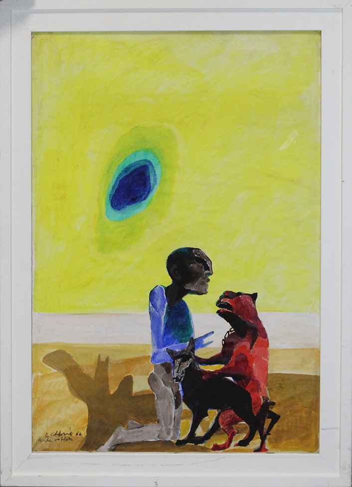 ENNIO CALABRIA, Senza titolo, Acrilico su carta intelata, Dim. 70x50, Al fronte: firma, anno e tecnica in basso a sinistra, Opera accompagnata da autentica su foto dell'artista, Opera con cornice