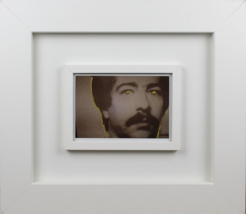 Mario Shifano, Volti della cronaca, 1990-97, Foto ritoccata a smalto, Esemplare unico, Dim. 10x15, Opera archiviata presso la Fondazione Mario Schifano " Archivio Generale dell' Opere di Mario Schifano " con n° archivio: F90-97/2022, il 2 agosto 2007, Opera pubblicata sul catalogo " Mario Schifano fotografie ritoccate " a pag.22, volume I, Al verso: firma "Schifano", Opera con cornice