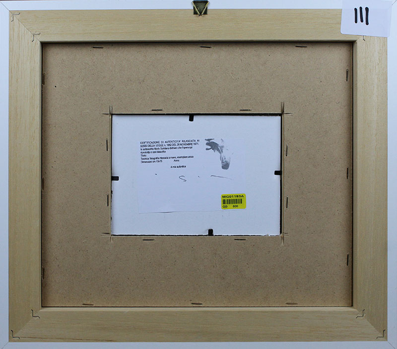 Mario Shifano, Erotika, 1990-97, Foto ritoccata a smalto, Esemplare unico, Dim. 10x15, Opera archiviata presso la Fondazione Mario Schifano " Archivio Generale dell' Opere di Mario Schifano " con n° archivio: F90-97/7475, il 24 ottobre 2007, Opera pubblicata sul catalogo " Mario Schifano fotografie ritoccate " a pag.174, volume I, Al verso: firma "Schifano", Opera con cornice