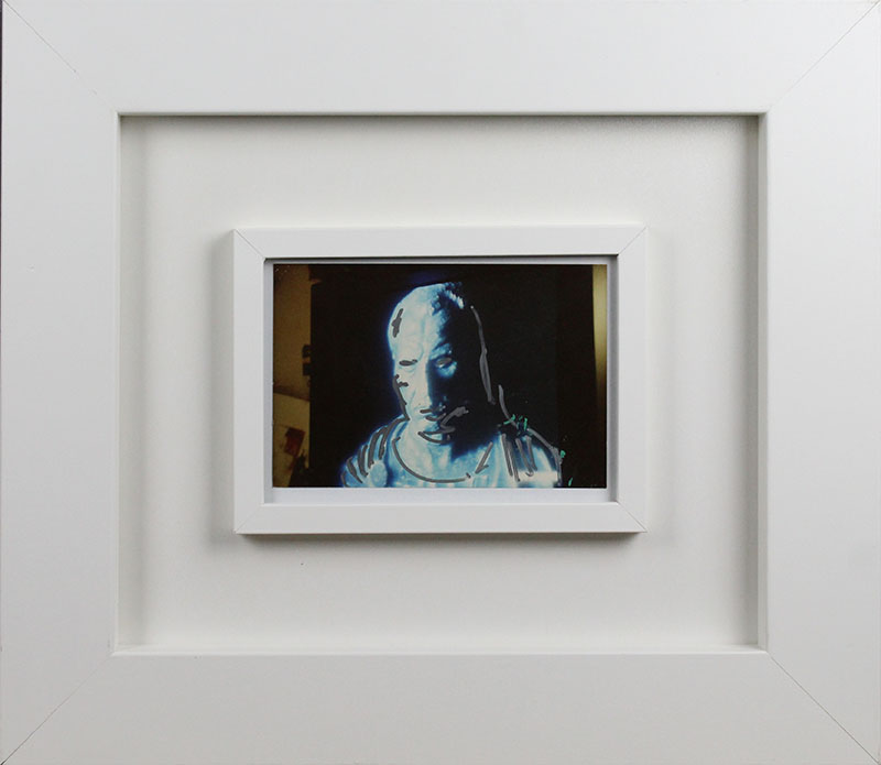 Mario Shifano, Volto storico, 1990-97, Foto ritoccata a smalto, Esemplare unico, Dim. 10x15, Opera archiviata presso la Fondazione Mario Schifano " Archivio Generale dell' Opere di Mario Schifano " con n° archivio: F90-97/6470, il 21 settembre 2007, Opera pubblicata sul catalogo " Mario Schifano fotografie ritoccate " a pag.33, volume I, Al verso: firma "Schifano", Opera con cornice