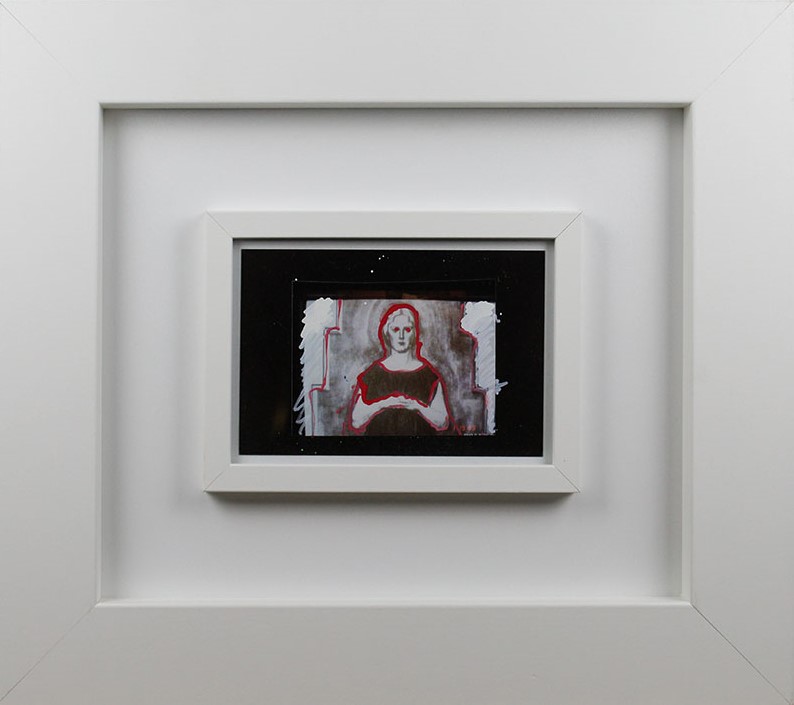 Mario Schifano, Antiche figure, 1990-97, Foto ritoccata a smalto, Esemplare unico, Dim.10x15, Opera archiviata presso la Fondazione Mario Schifano " Archivio Generale dell' Opere di Mario Schifano " con n° archivio: F90-97/6002 il 2 agosto 2007, Opera pubblicata sul catalogo " Mario Schifano fotografie ritoccate " a pag.18, volume l, Al verso: firma "Schifano", Opera con cornice