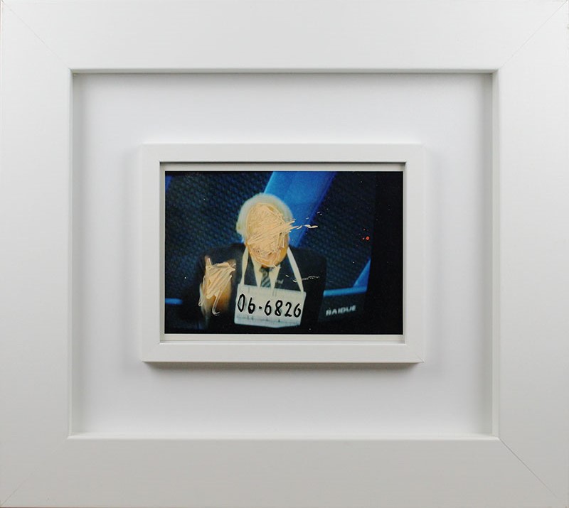Mario Schifano, Marco Pannella, 1990-97, Foto ritoccata a smalto, Esemplare unico, Dim.13x18, Opera archiviata presso la Fondazione Mario Schifano " Archivio Generale dell' Opere di Mario Schifano " con n° archivio: F90-97/4320 il 28 giugno 2007, Opera pubblicata sul catalogo " Mario Schifano fotografie ritoccate " a pag.410, volume ll, Al verso: firma "Schifano", Opera con cornice