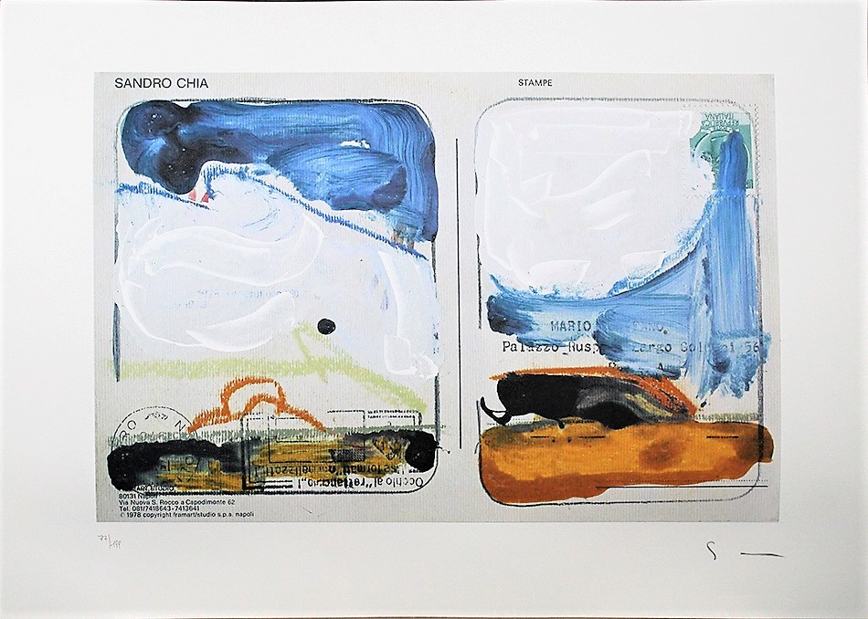 Mario schifano, Senza titolo, Serigrafia materica a smalto su carta, Dim. 50x70, Al fronte: esemplare n° 28/199 in basso a sinistra e firmato in basso a destra, Senza cornice