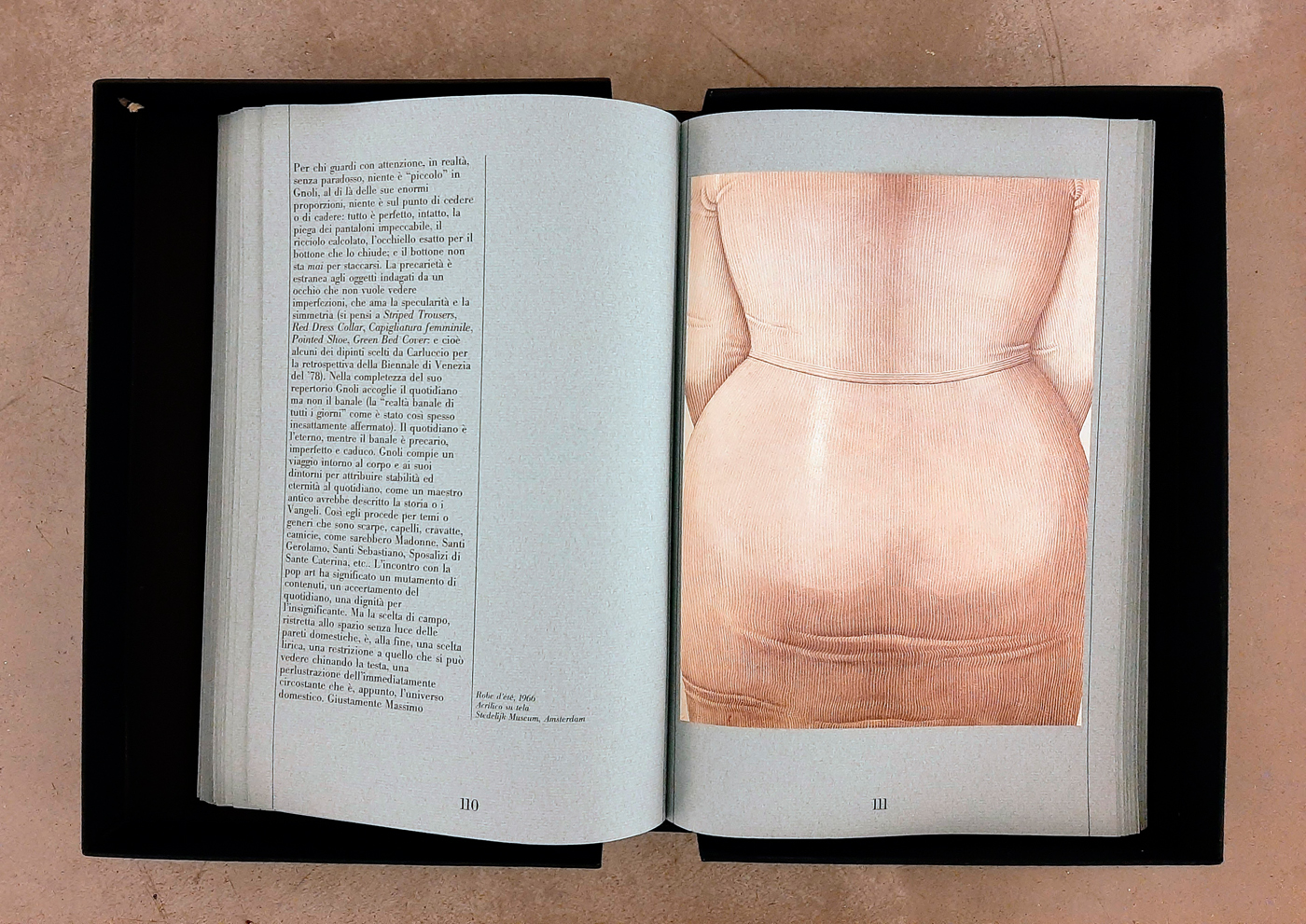 Catalogo monografico in edizione di pregio, con testo introduttivo di Italo Calvino e testo di Vittorio Sgarbi. Edizione impressa da Franco Levi sotto la direzione di Franco Maria Ricci a Milano. La carta a mano vergata è stata fabbricata