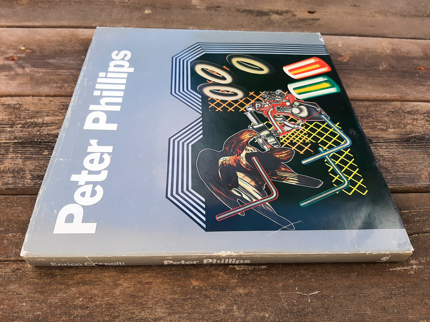 Catalogo monografico dedicato a Peter Phillips, a cura di Enrico Crispolti con art director Giampaolo Prearo. Copertina cartonata con sovraccoperta (con piccole lacerazioni), snp con 154 tavole riprodotte e descritte.