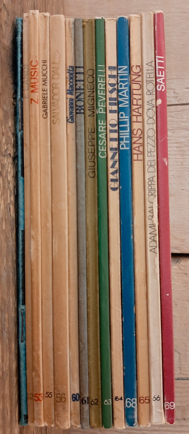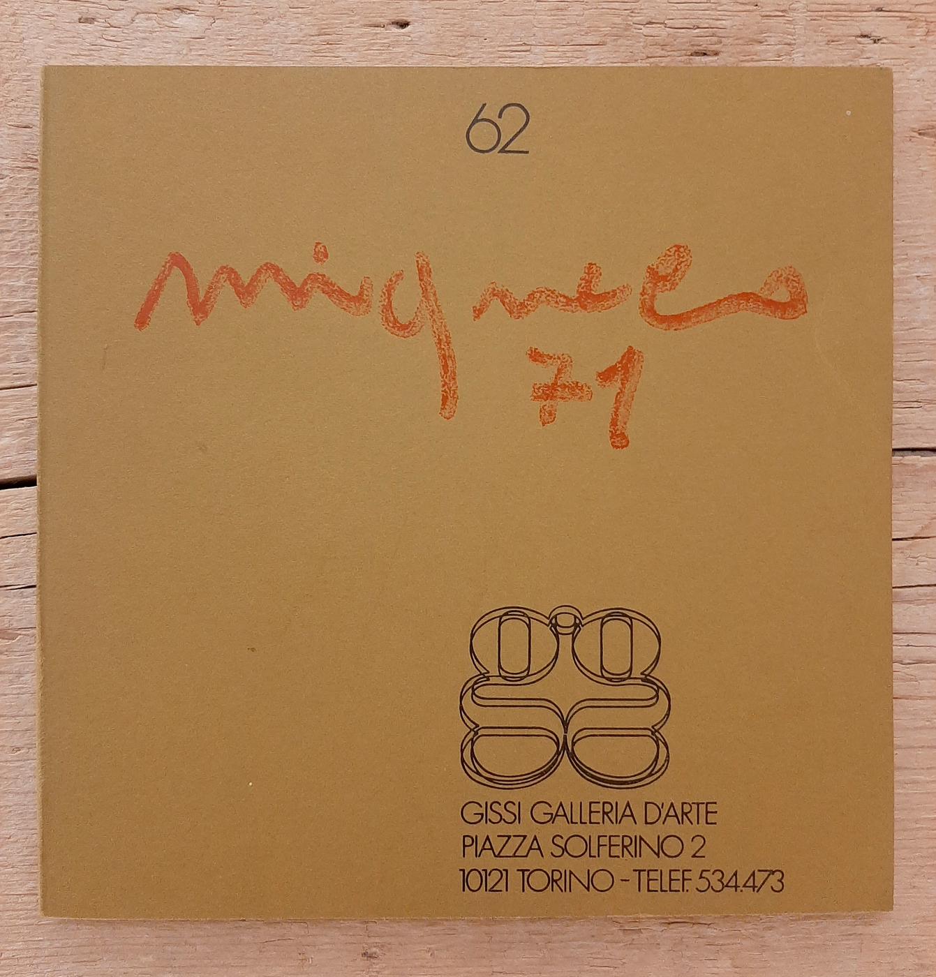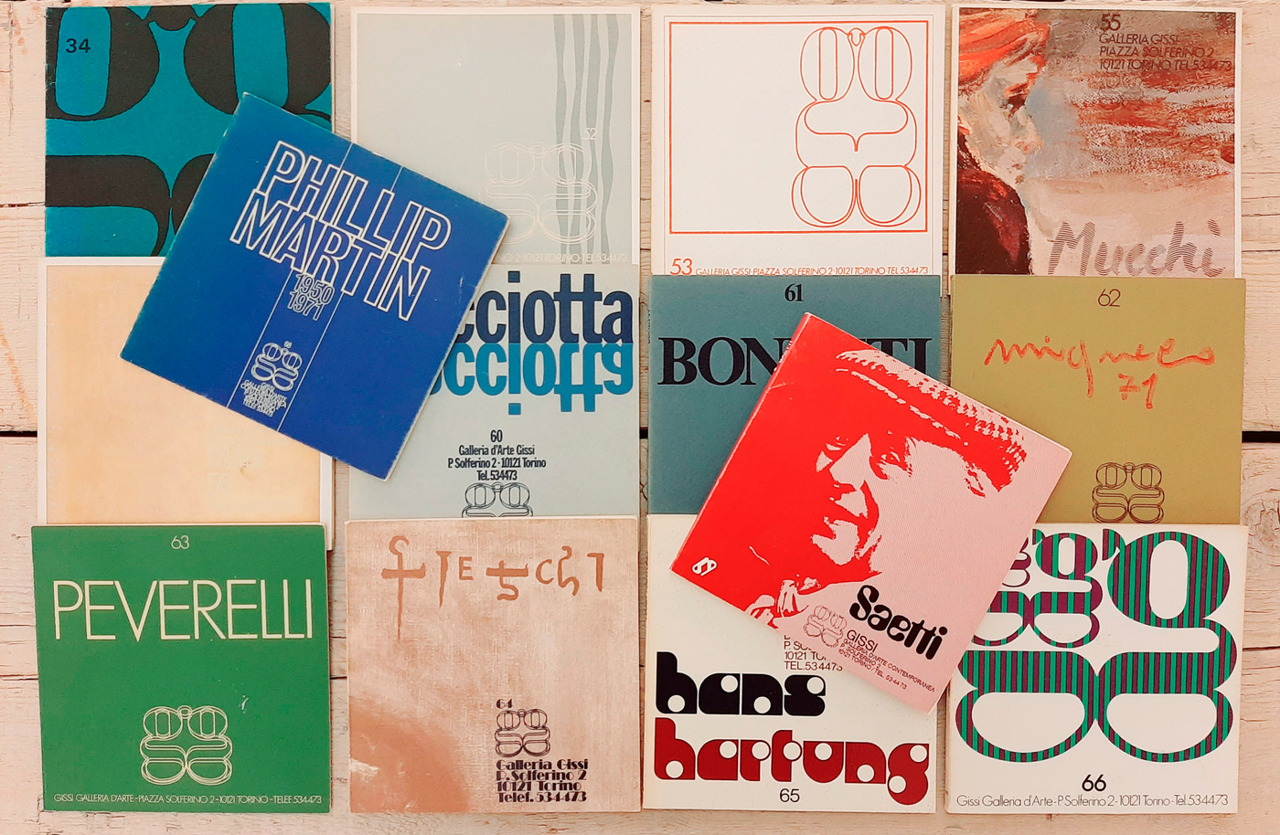 Galleria Gissi di Torino, cataloghi mostre: n. 34 Pignatelli,aprile 1967; n. 52 Fernando Eandi, gennaio 1970; n.53 Zoran Music, febbraio 1970; n. 55 Gabriele Mucchi, maggio 1970; n. 56 Salvador Dali, luglio 1970; n.60 Giovanni Macciotta, gennaio 1971; n. 61 Ferruccio Bonetti, febbraio 1971; n.62 Giuseppe Migneco, marzo 1971; n. 63 Cesare Peverelli, aprile 1971; n. 64 Giannetto Fieschi, maggio 1971; n. 65 Hans Hartung, giugno 1971; n. 66 Le azioni divergenti. Pitture personaggi oggetti di: Adami, Baj, Crippa, Del Pezzo, Dova, Rotella, novembre 1971; n.68 Phillip Martin, marzo 1972; n.69 Bruno Saetti, giugno 1972