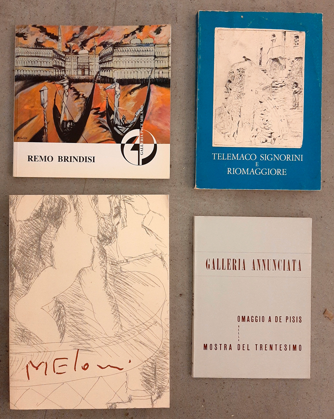 ARTE FIGURATIVA DEL DOPO GUERRA (BRINDISI, SIGNORINI, MELONI E DE PISIS) – Lotto unico di 4 cataloghi