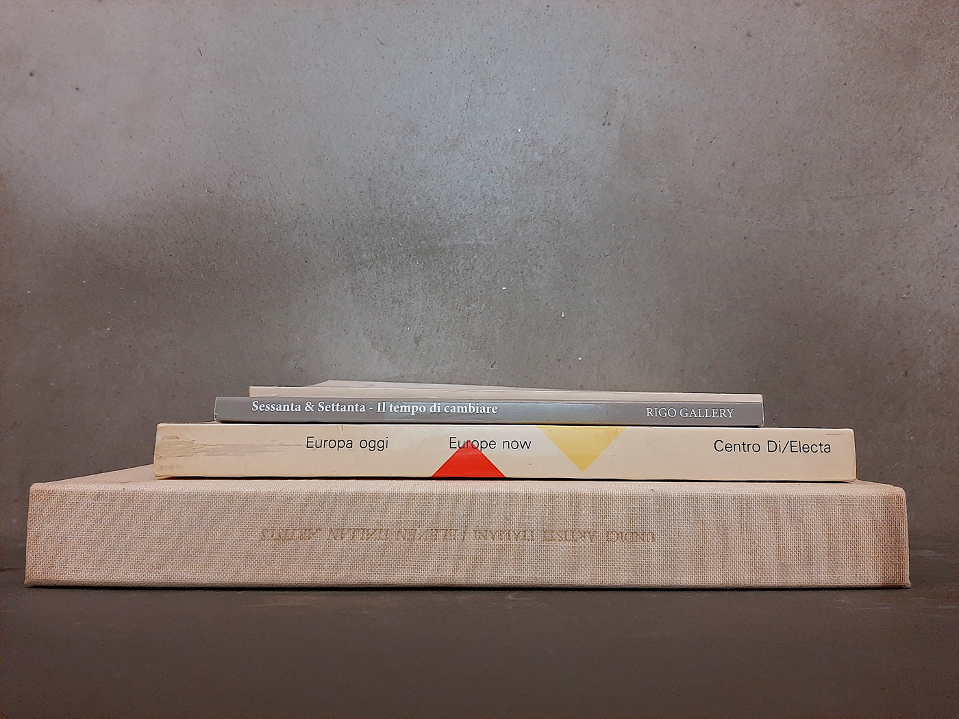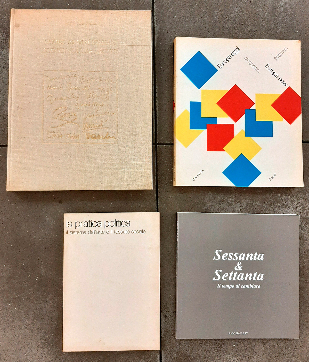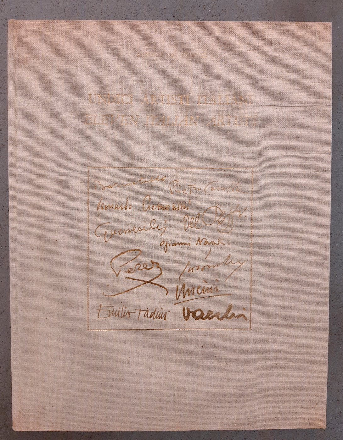 L'apporto delle generazioni “di mezzo” all'arte italiana dal 1955 ad oggi nella ricerca di quattro scultori e sette pittori, a cura di Antonio del Guercio. Testi in lingua italiana e inglese. Opere di Gianfranco Baruchello, Pietro Cascella, Leonardo Cremonini, Lucio del Pezzo, Giuseppe Guerreschi, Gianni Novak, Augusto Perez, Giò Pomodoro, Emilio Tadini, Giuseppe Uncini, Sergio Vacchi. Copertina cartonata rivestita in tessuto, con sovraccoperta in metacrilato trasparente, pagine 331