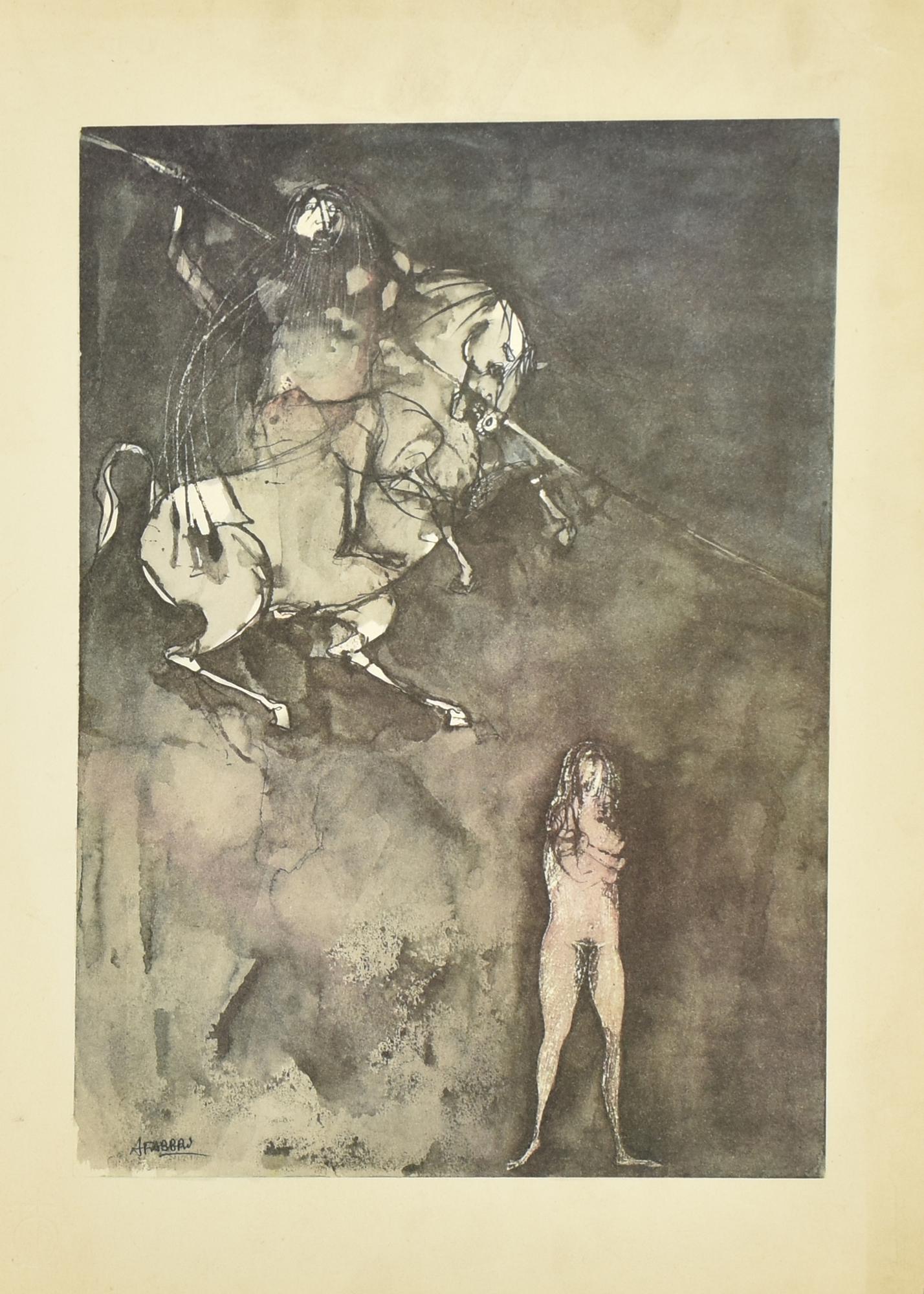 Agenore Fabbri CAVALIERE E FIGURA riproduzione fotolitografica, cm 47x32...