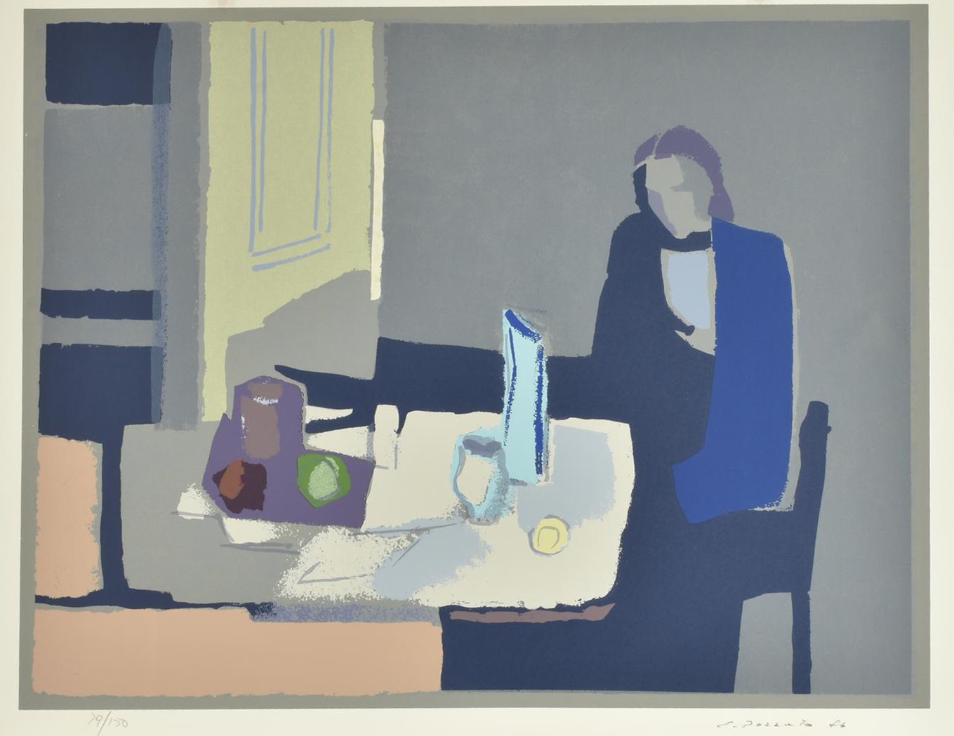 Epifanio Pozzato INTERNO E VASO AZZURRO serigrafia su carta Fabriano, cm...
