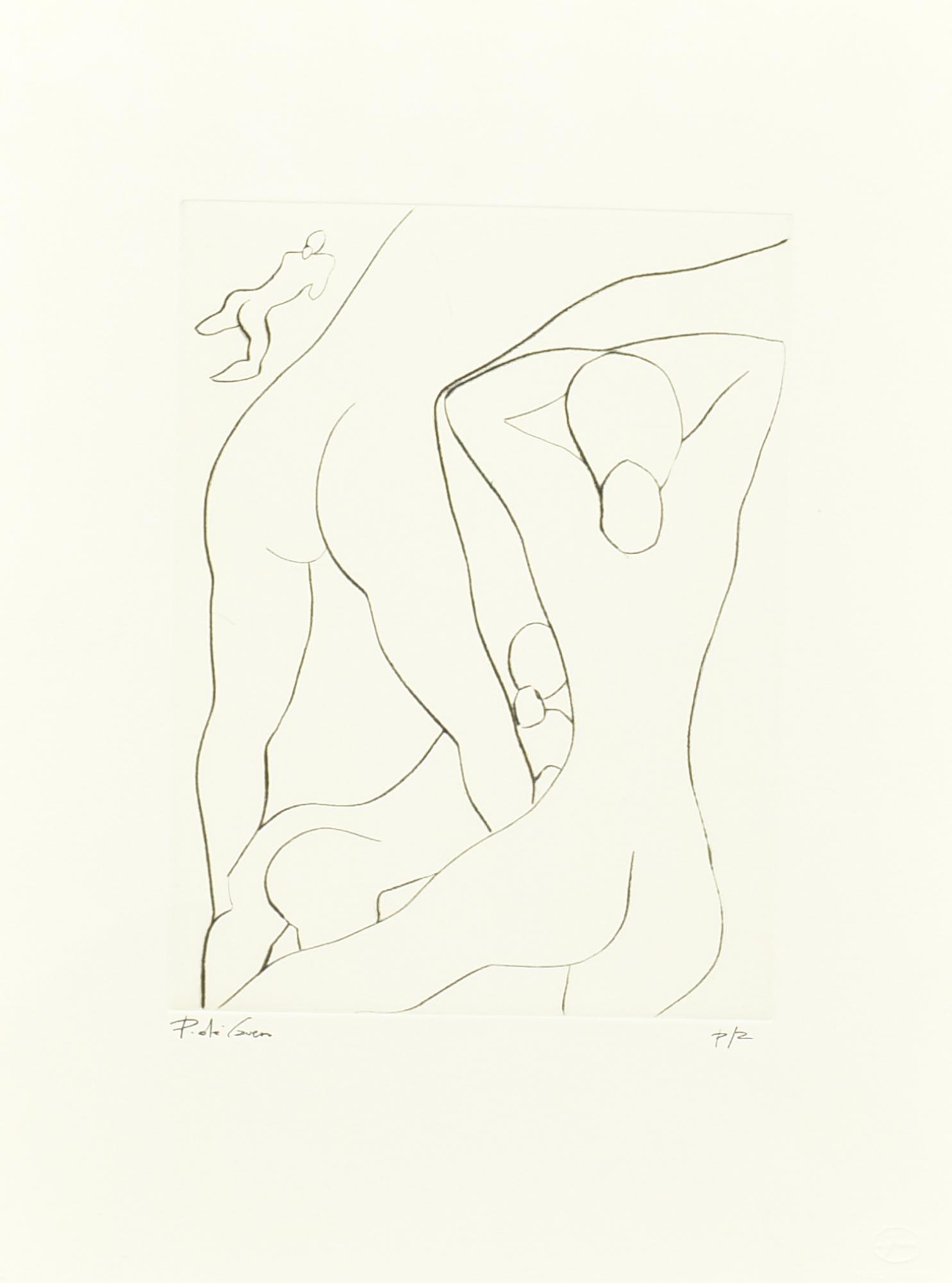 Paola De Cavero NUDI incisione su carta, battuta cm 23x18, su foglio 40x30;...