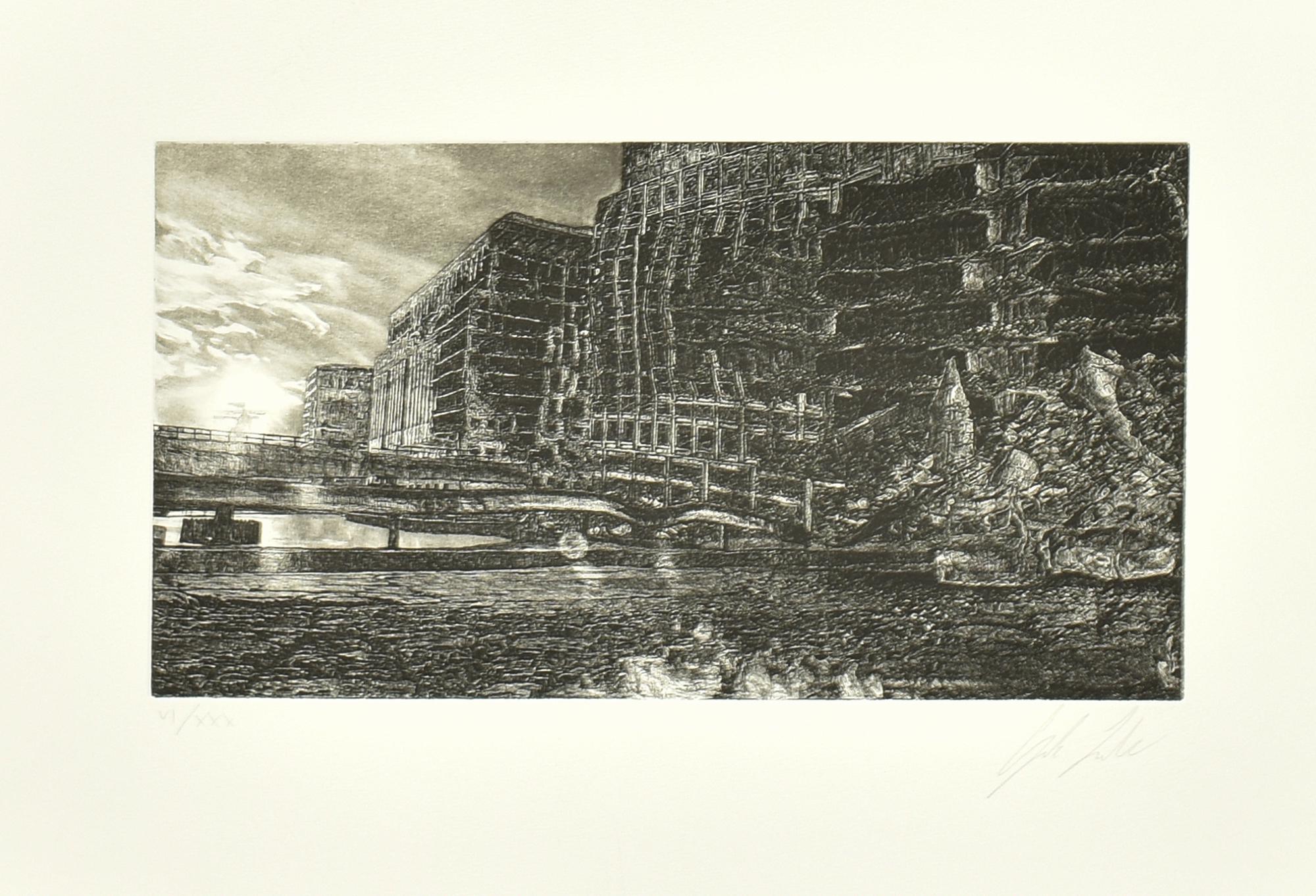 Giulio Saccardo CANARY WARF acquaforte- acquatinta su carta, battuta cm...