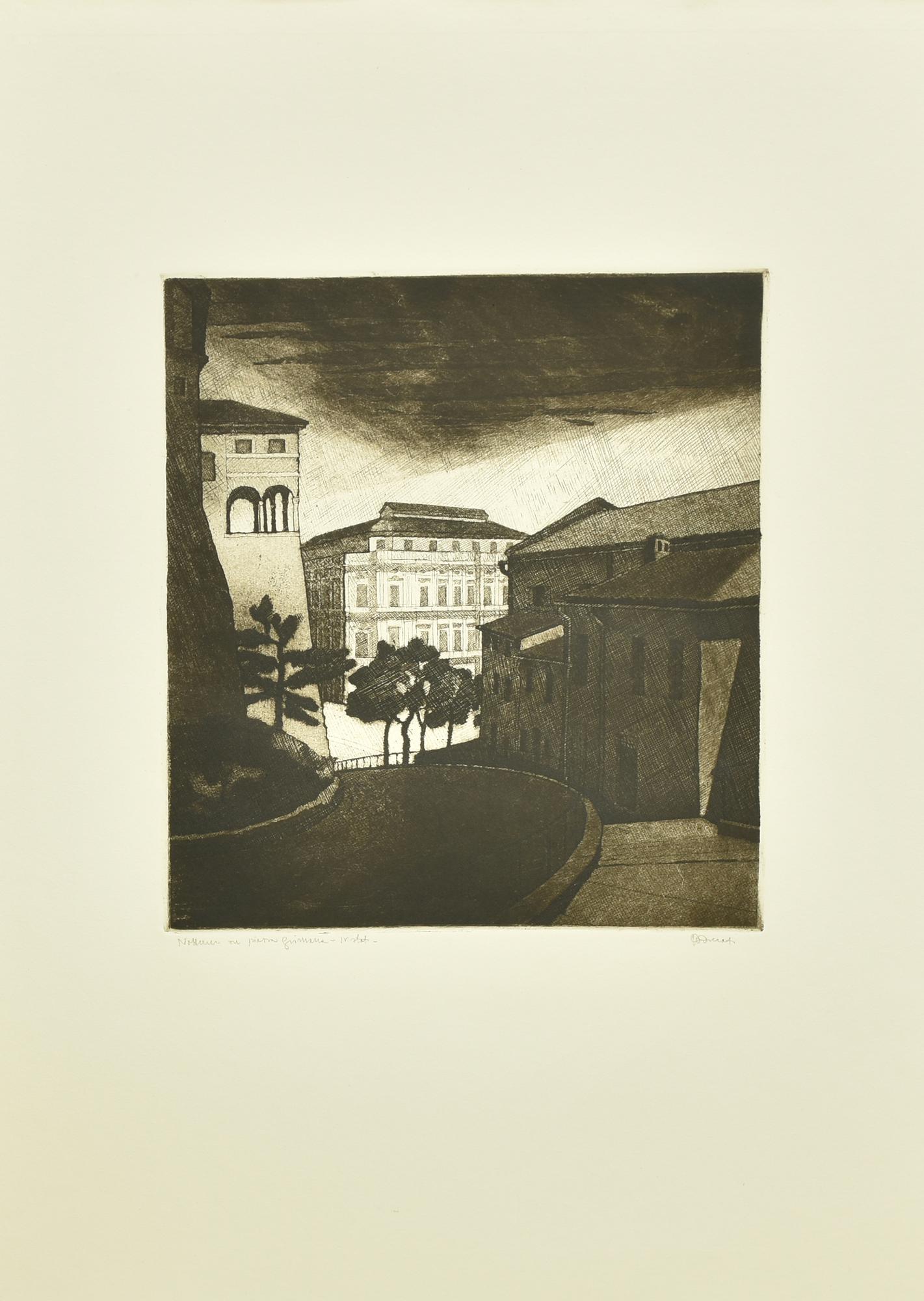 Diego Donati NOTTURNO SU PIAZZA maniera nera su carta, battuta cm 24x19, su...