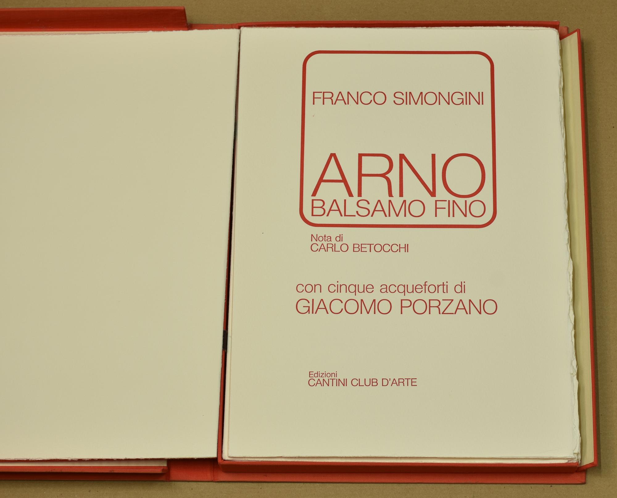 Giacomo Porzano ARNO BALSAMO FINO volume illustrato con 5 acqueforti di...