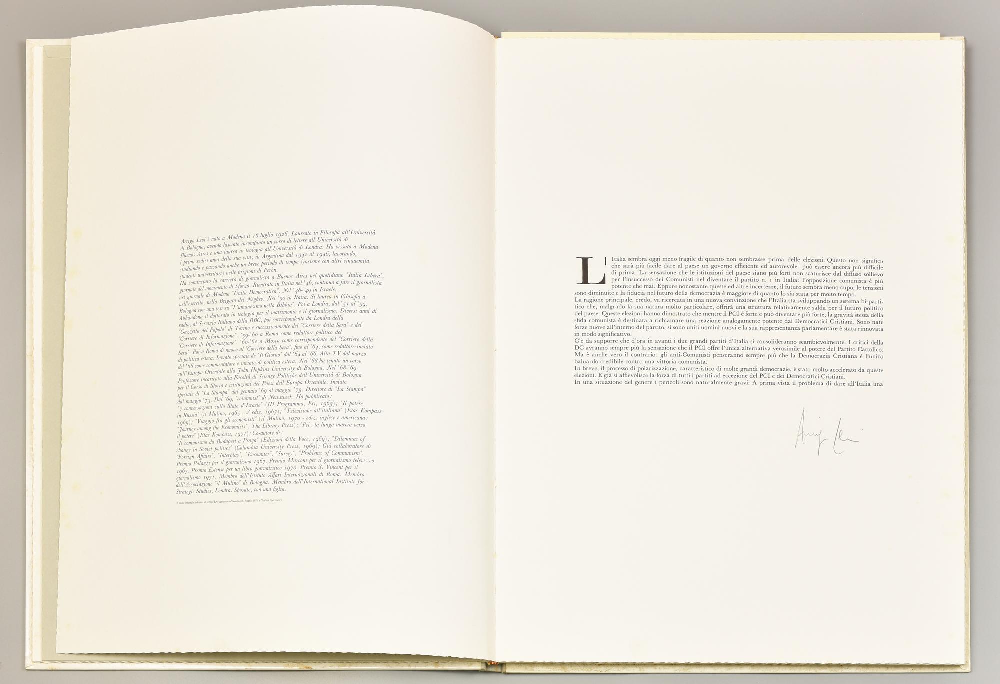 Testi critici autografati di Gianni Brera, Arrigo Levi, Stanislao Nievo, Ruggero Orlando e Giancarlo Pajetta
