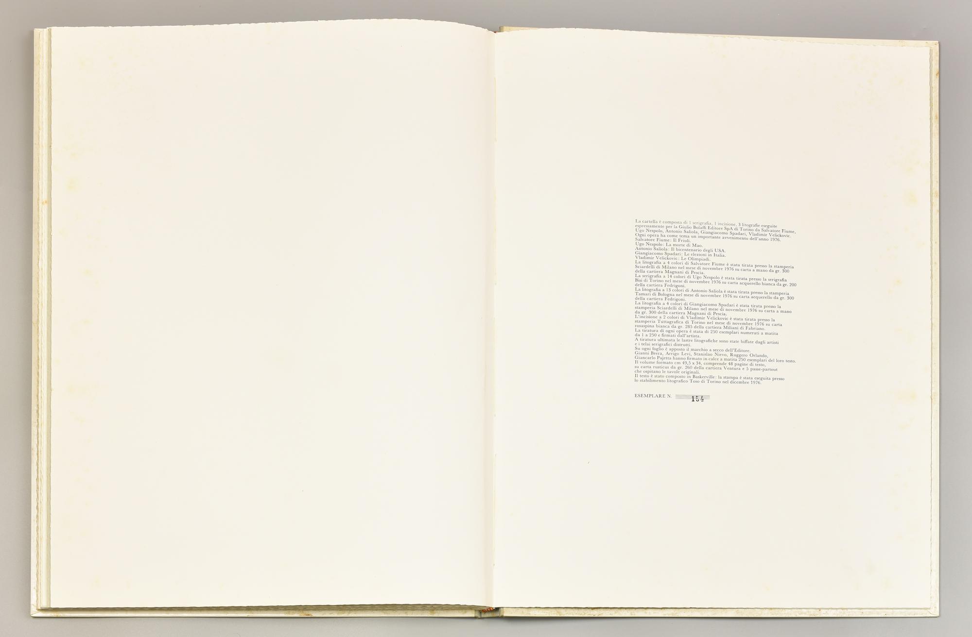 volume contenente 5 opere grafiche relative ad eventi avvenuti nel 1976 dei seguenti artisti: