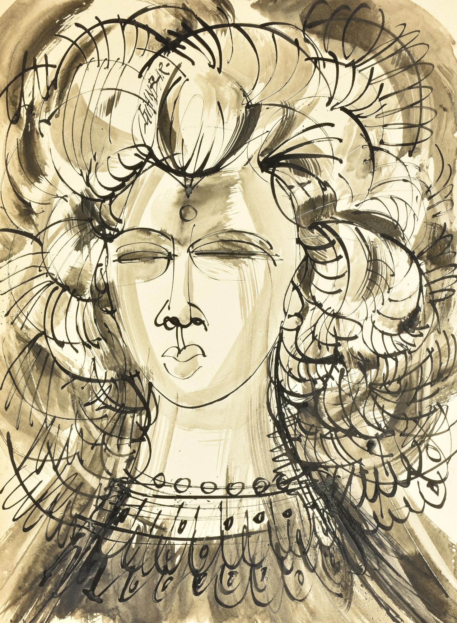 GIANBAR (Gianni Baretta) DONNA CON COLLANA china acquarellata su carta, cm...