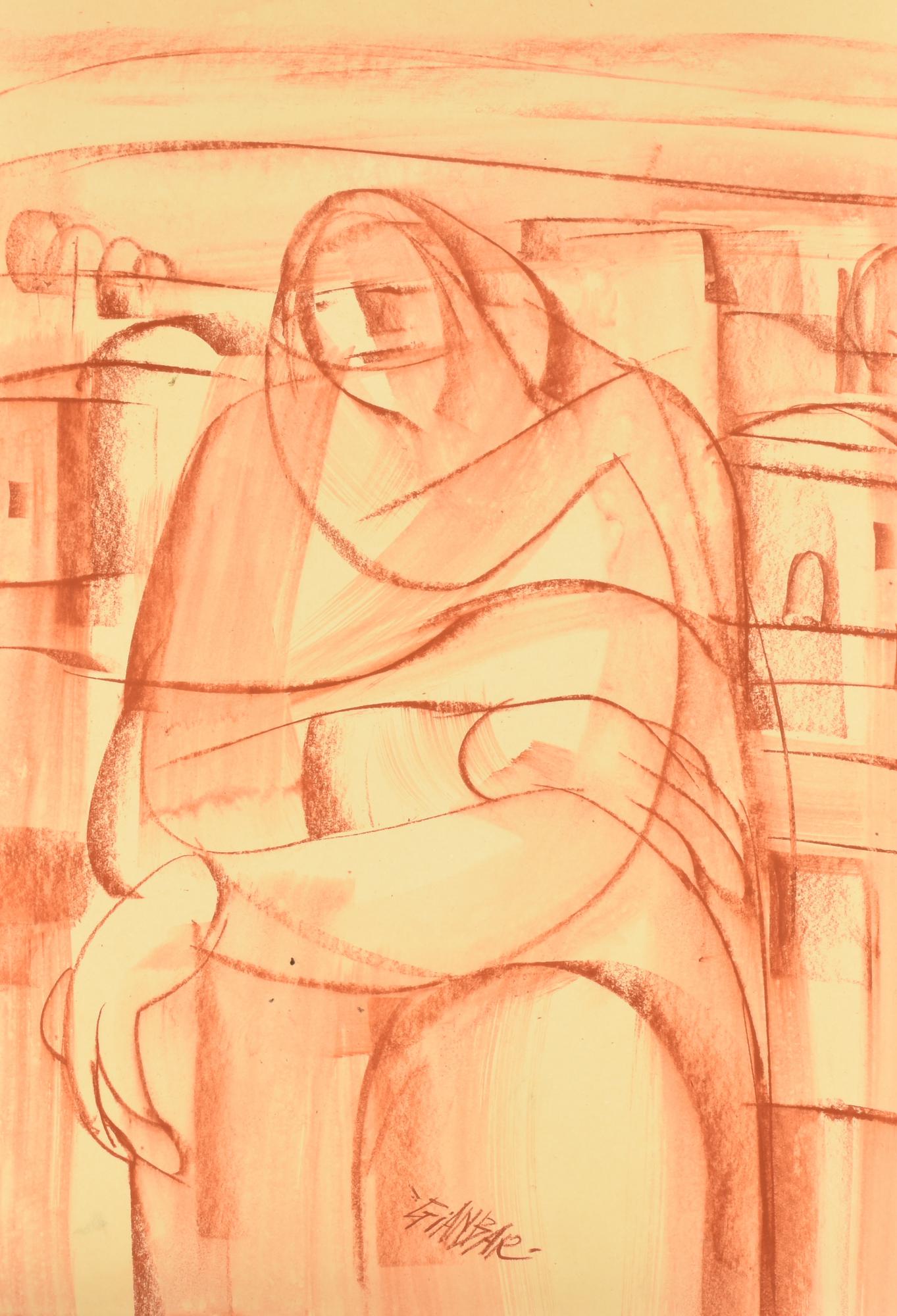 GIANBAR (Gianni Baretta) ARABO SEDUTO tecnica mista su cartoncino, cm 47x31...