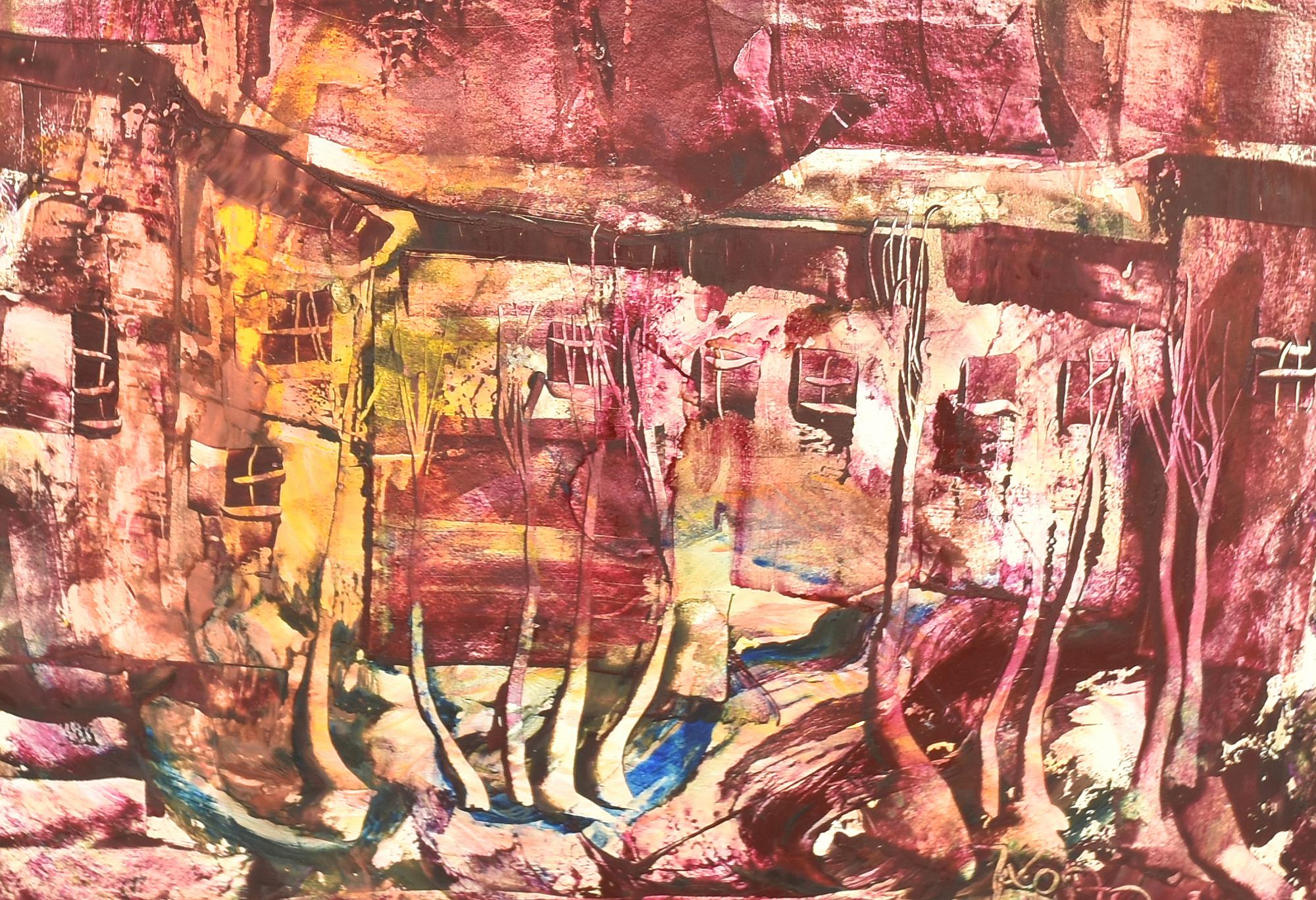 Kos SENZA TITOLO tecnica mista su carta, cm 36x51 firma e data eseguita nel 1970