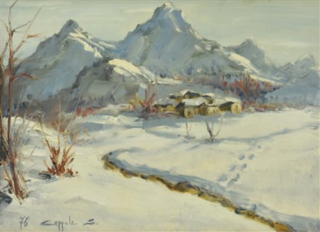 S. Coppola PAESAGGIO INNEVATO olio su tela, cm 25,5x35 firma e data eseguito...